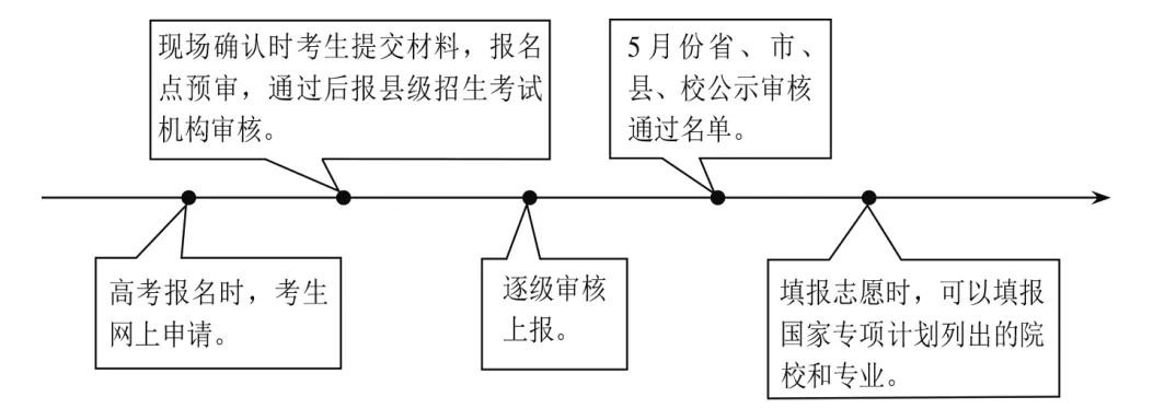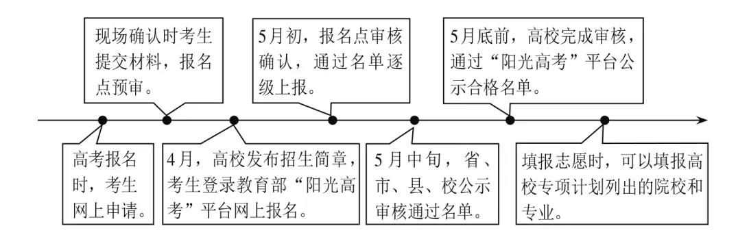 对三个专项计划的资格审核,我省采取集中预审核办法。即考生须在高考报名期间提交相关申请,市、县两级招生考试机构按照上一年度有关规定进行预审核,逾期不再办理审核手续。待国家2025年相关文件公布后,将预审核结果予以公示。如国家2025年相关文件对考生报考资格进行了调整,我省将按照国家最新文件规定执行。其中,高校专项计划公示名单,以“阳光高考”平台申报通过后的为准进行公示。