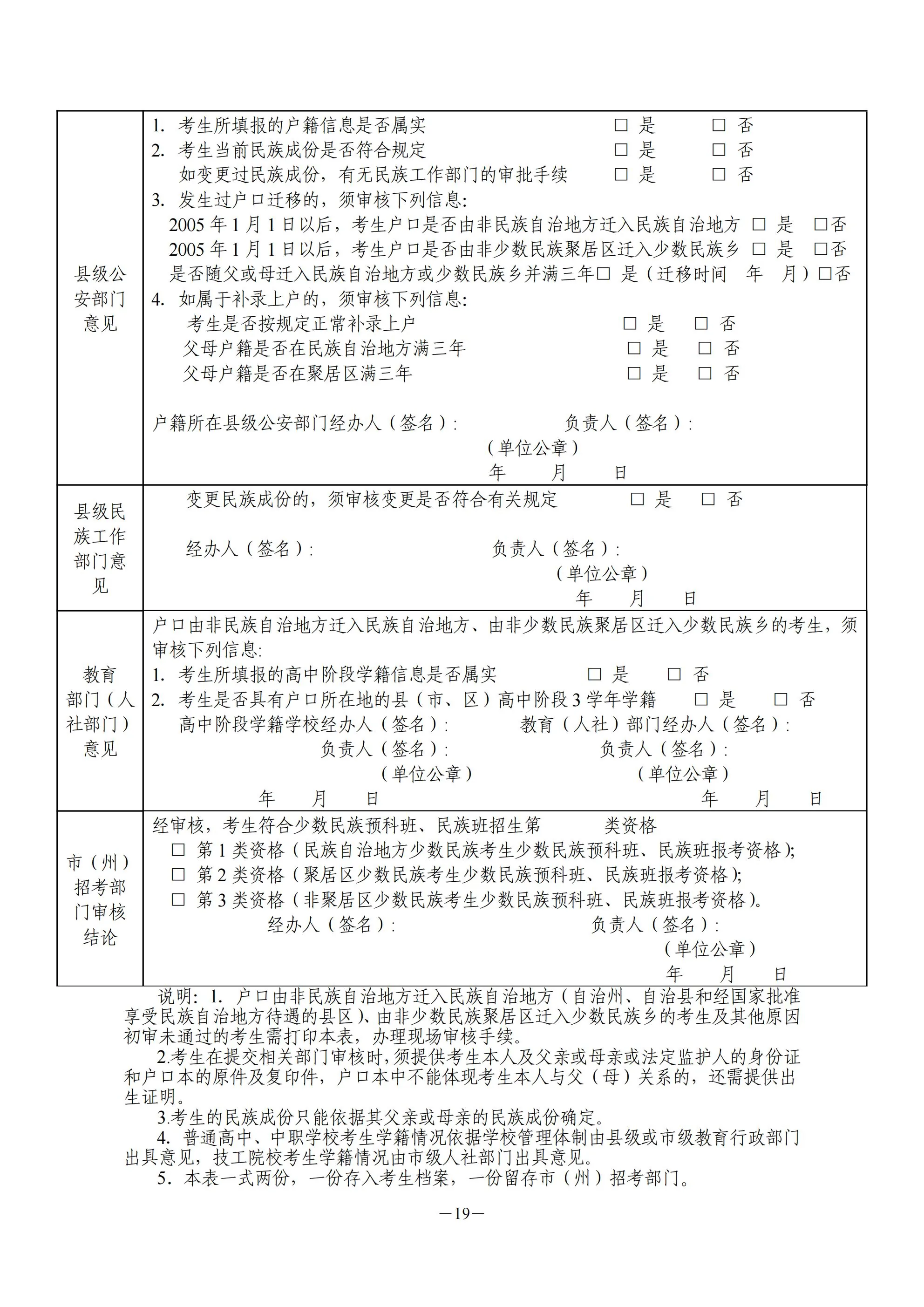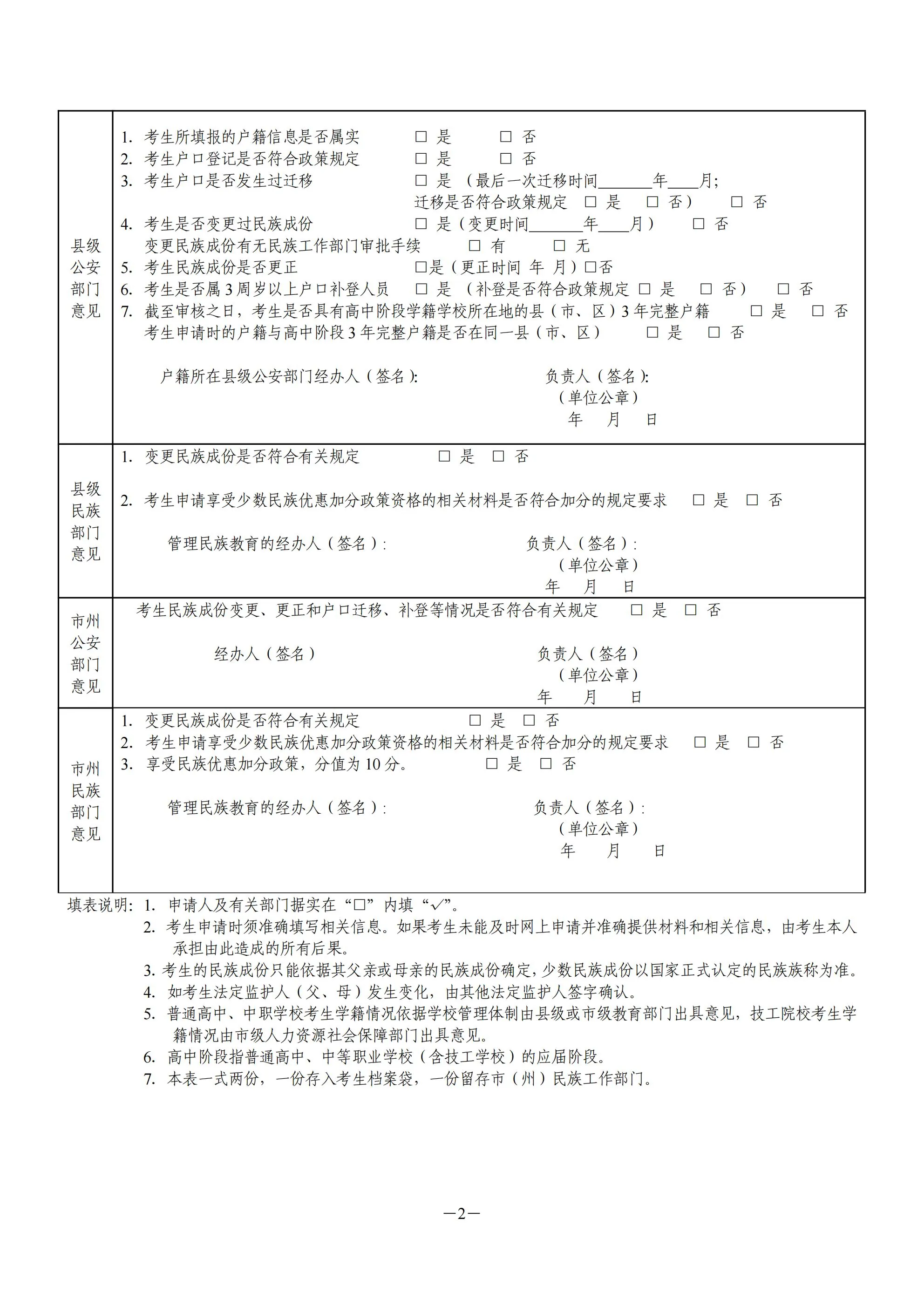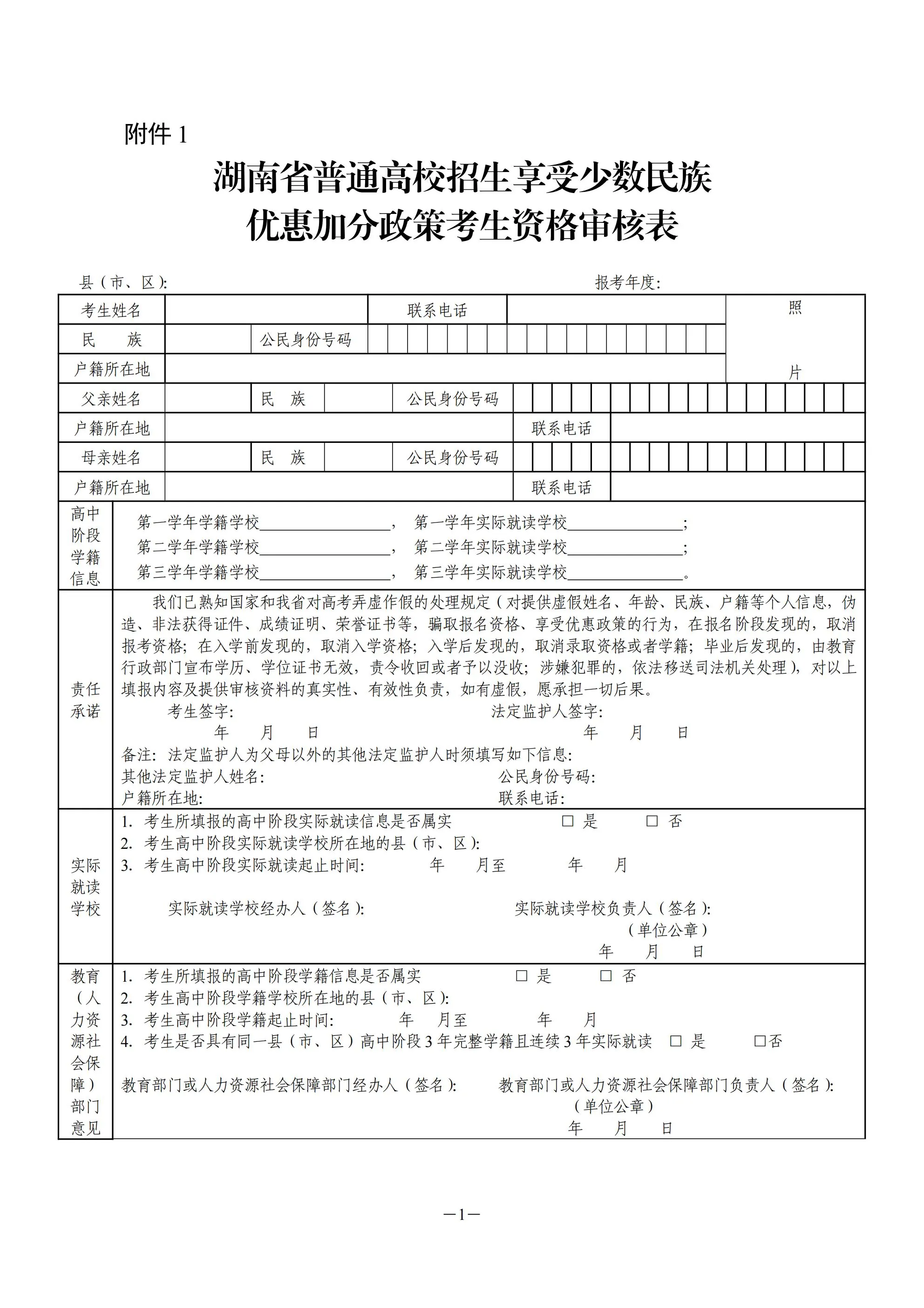 1.湖南省普通高校招生享受少数民族优惠加分政策考生资格审核表