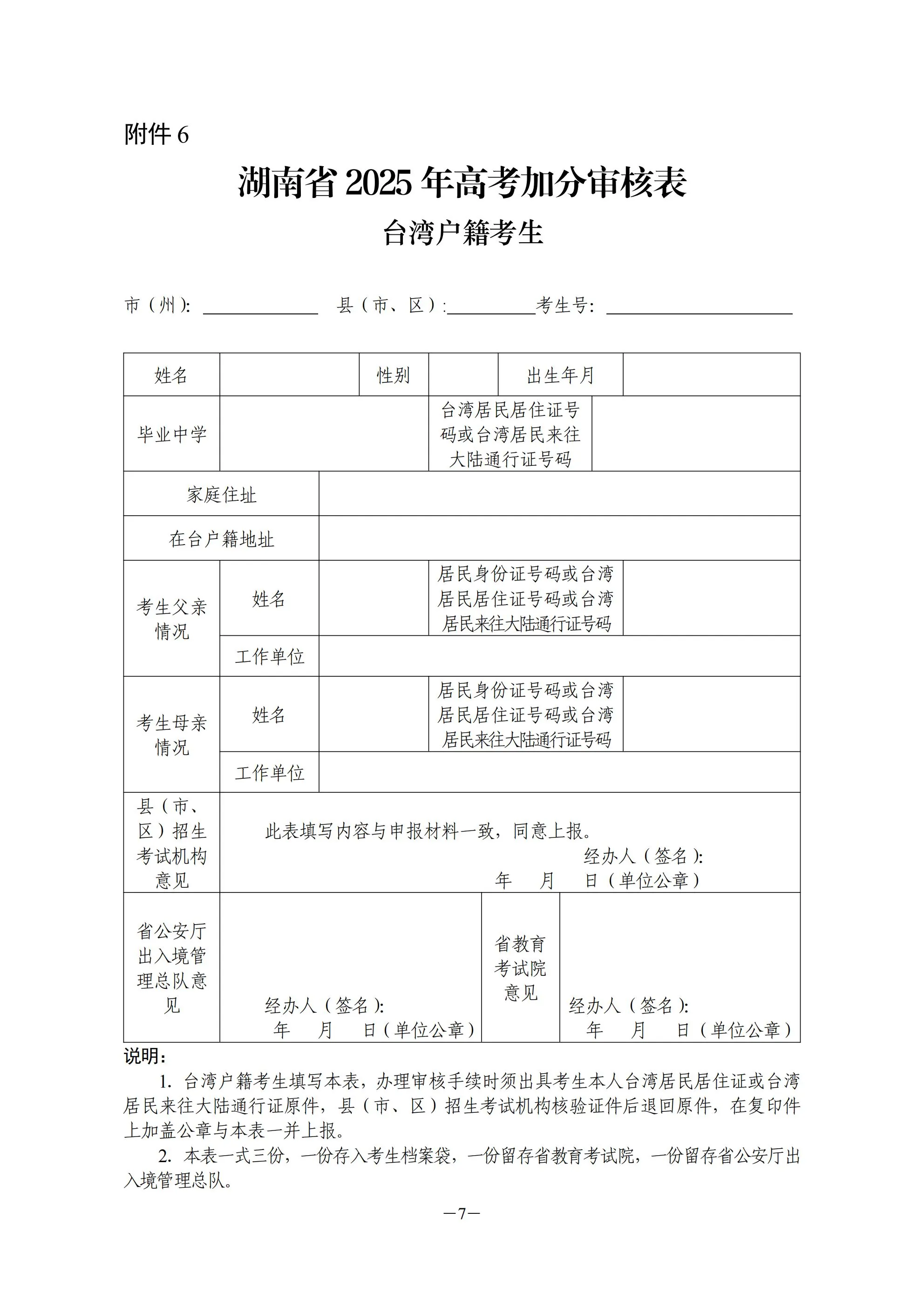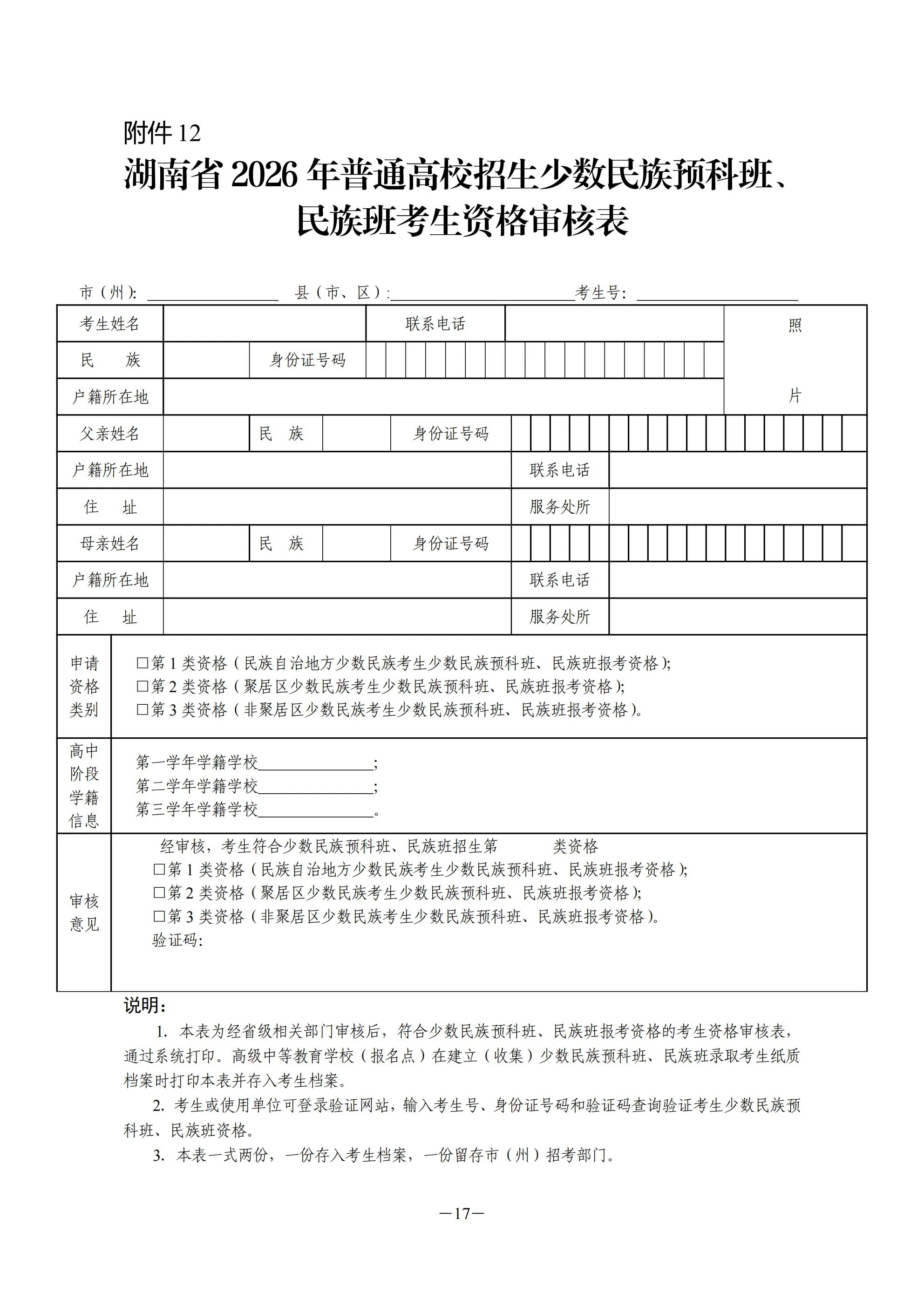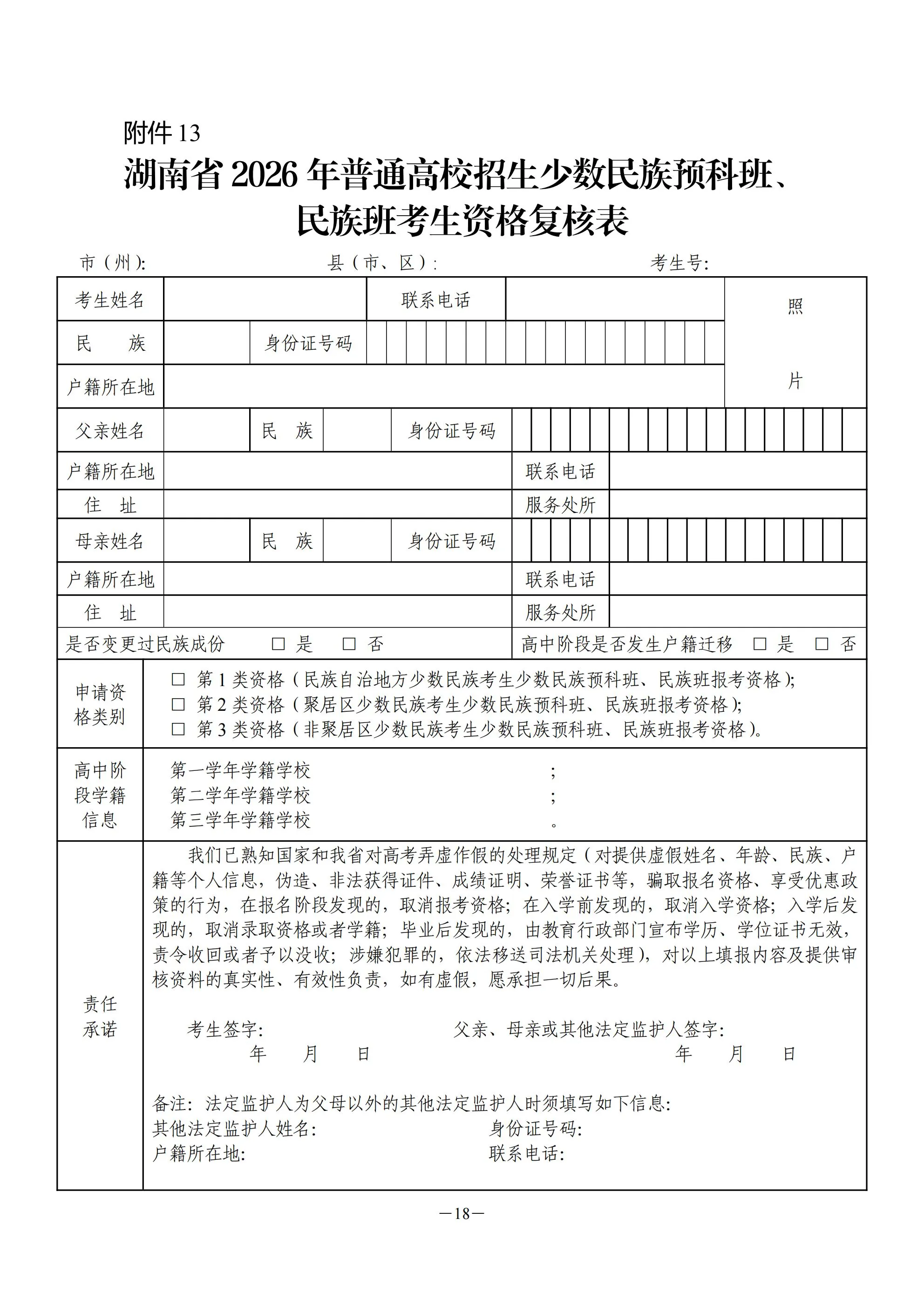 1.湖南省普通高校招生享受少数民族优惠加分政策考生资格审核表