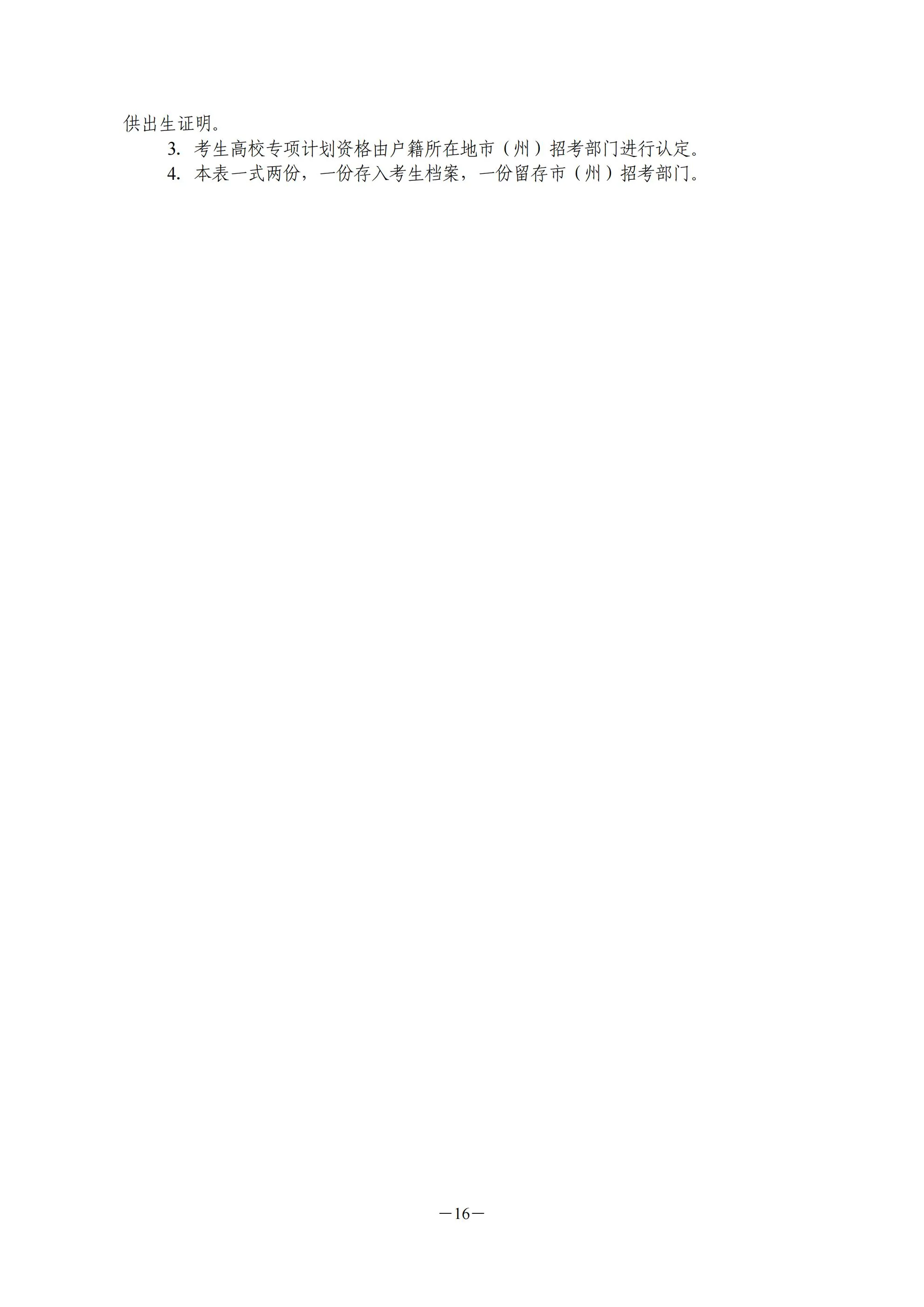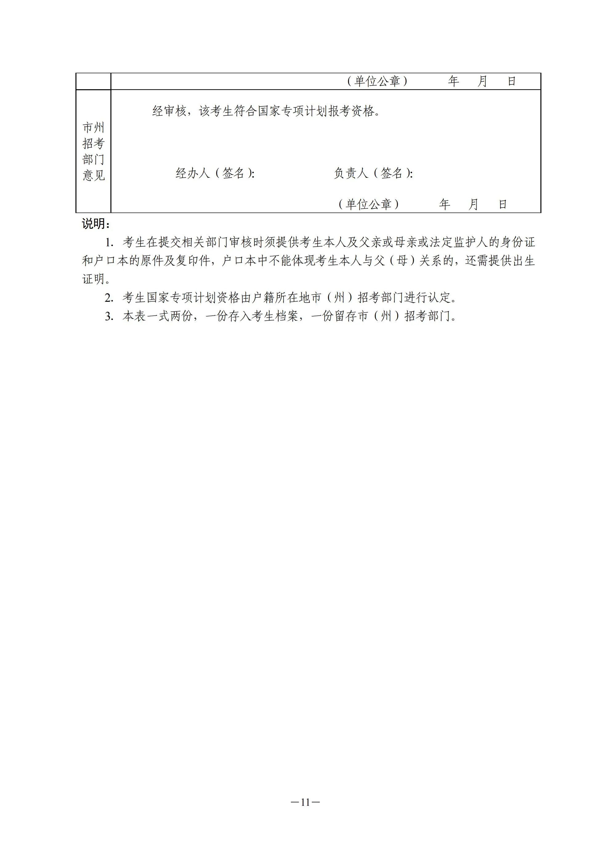 (2)地方专项计划资格、少数民族预科班和民族班资格由省教育考试院联合相关部门进行初步审核。初审完成后,省教育考试院将通过各级招生考试机构和高级中等教育学校(报名点)通知考生,考生可登录“考生信息填报系统”查询本人初审结论。初审未通过地方专项计划资格的考生,需到高级中等教育学校(报名点)领取打印的地方专项计划现场审核表,并办理后续现场资格审核手续;初审未通过少数民族预科班和民族班资格的考生,需到高级中等教育学校(报名点)领取打印的复核表,根据需复核的内容到相关部门办理资格复核手续;初审认定具备资格的考生,不需要再办理后续审核手续,录取结束后,通过地方专项计划、少数民族预科班和民族班录取的考生,由高级中等教育学校(报名点)在建立(收集)考生纸质档案时统一打印相应的审核表(附件10和附件12),存入考生档案。