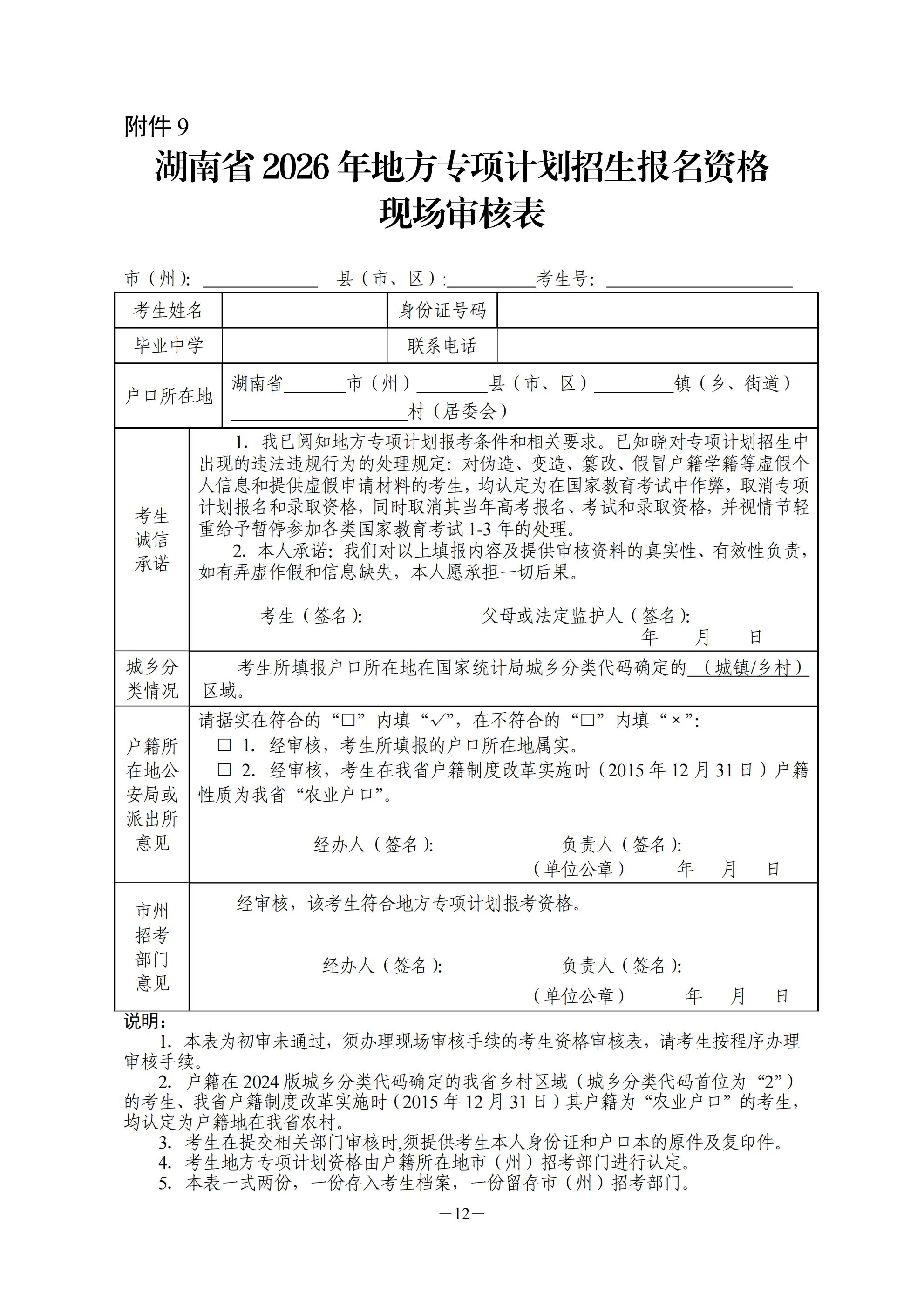 3.办理现场审核手续。考生在高级中等教育学校(报名点)领取打印的审核表后,于2026年2月7日至3月26日的工作日期间(具体时间由审核主管部门安排),携带审核表、资格申报证明材料原件和复印件到县(市、区)、市(州)相关部门办理审核手续。需省级部门审核的事项(具体见第五部分),由省教育考试院组织进行集中审核,考生个人不需要到省级相关部门办理审核手续。