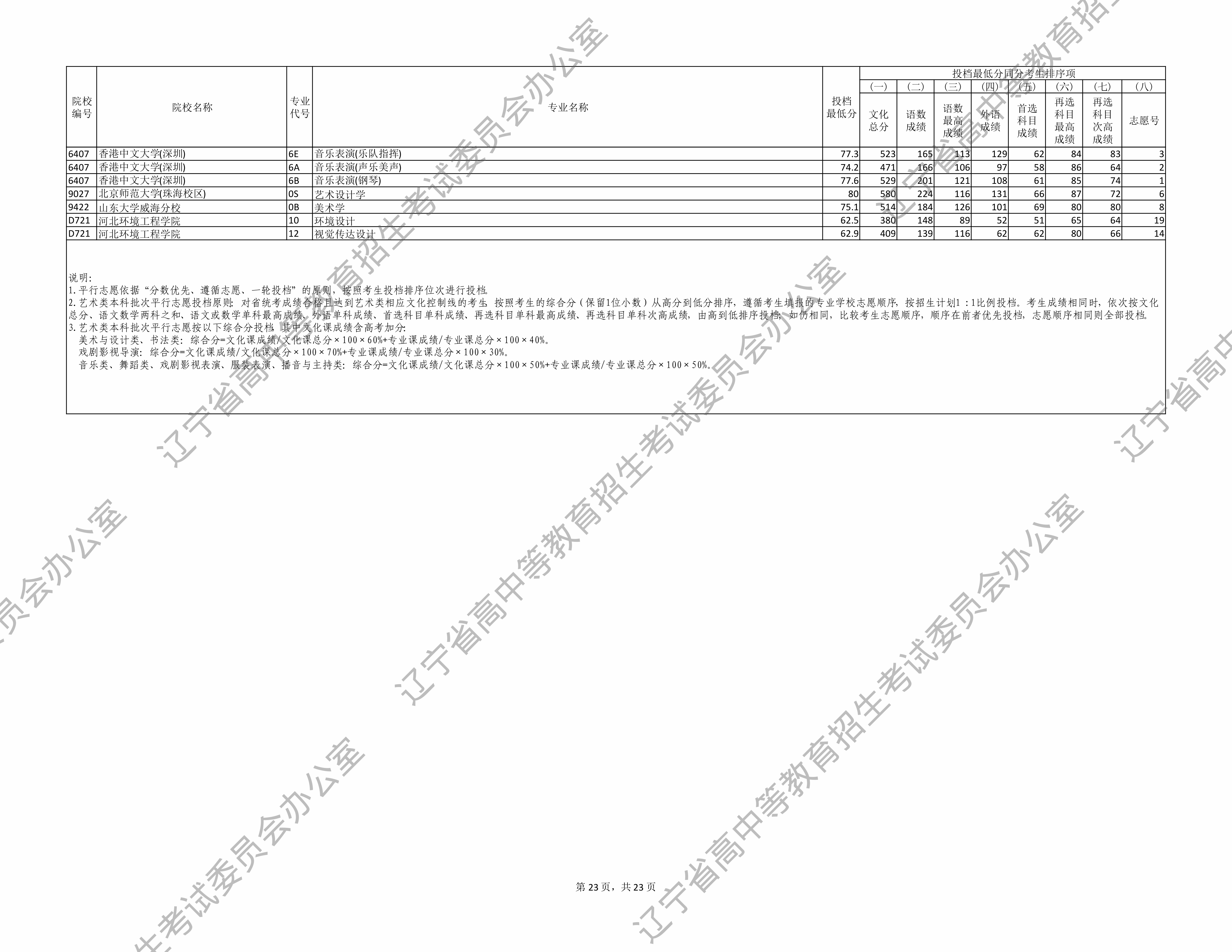 2025年辽宁高考艺术类本科批音乐类 香港中文大学(深圳) 的 音乐表演 专业录取分数溯源信息