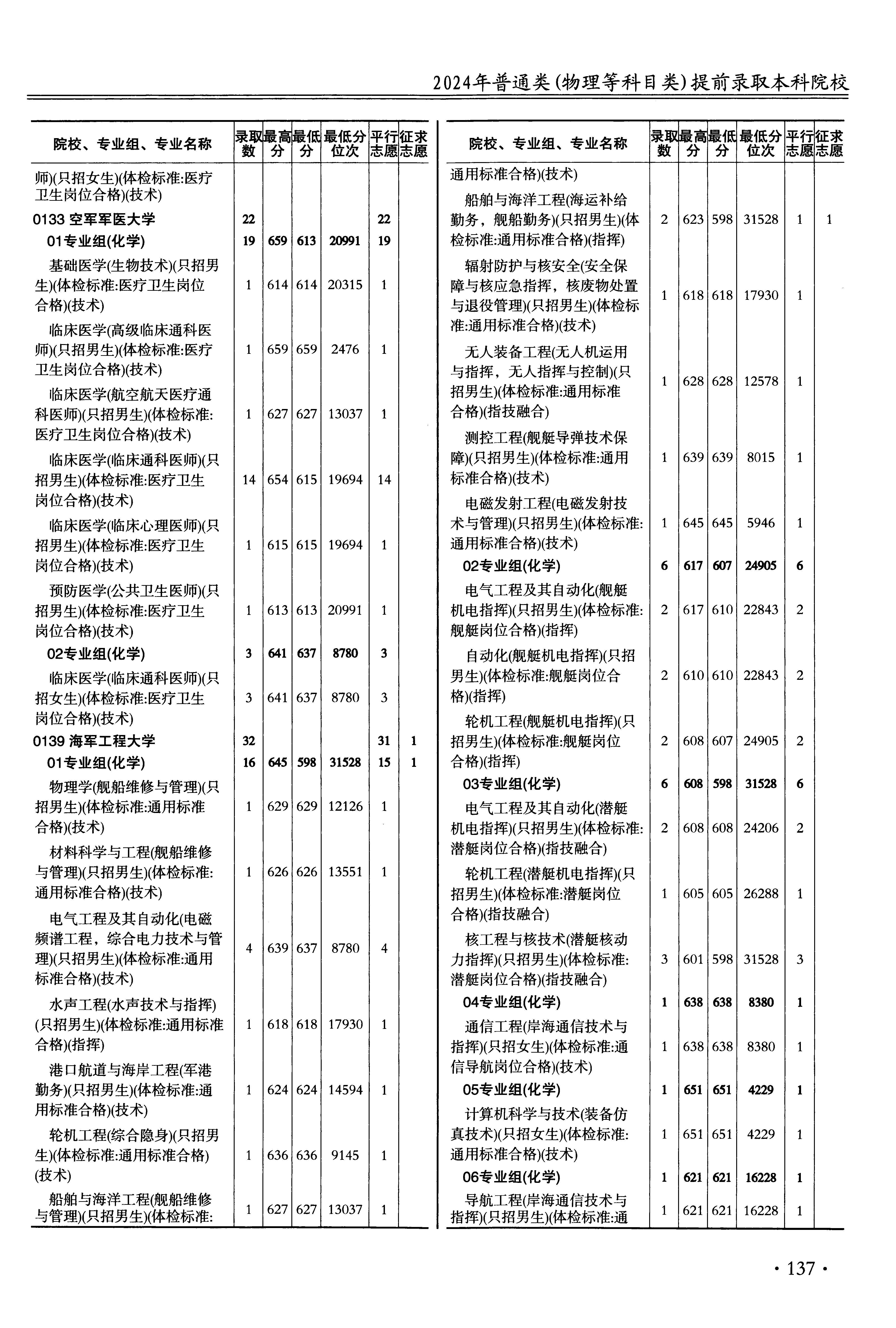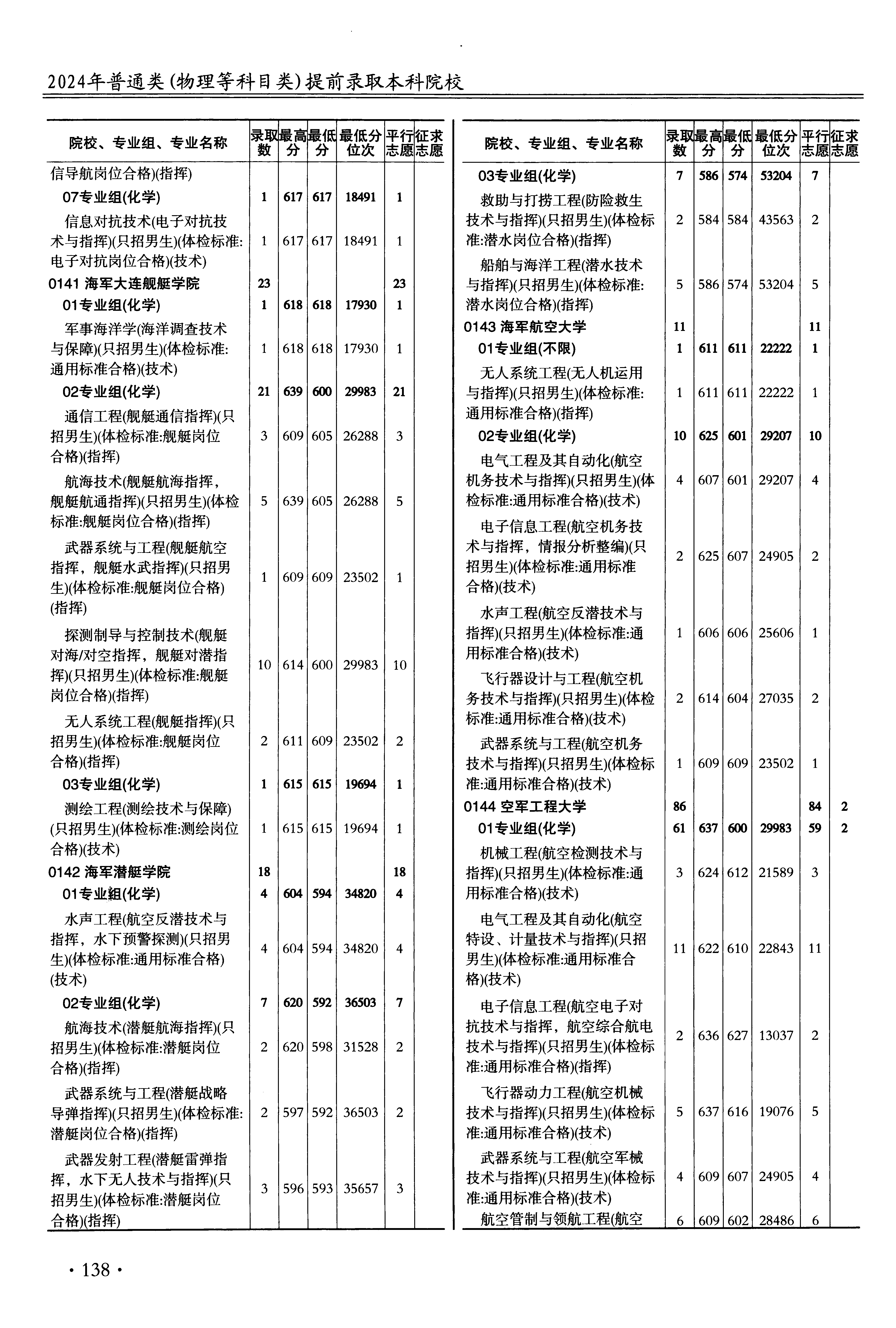 | 0139 | 海军工程大学 | 22 | 信息对抗技术(电子对抗技术与指挥)(只招男生)(体检标准:电子对抗岗位合格)(技术) | 617 | 18491 | 本科 | 物理 ,再选: 化学 | 1 |