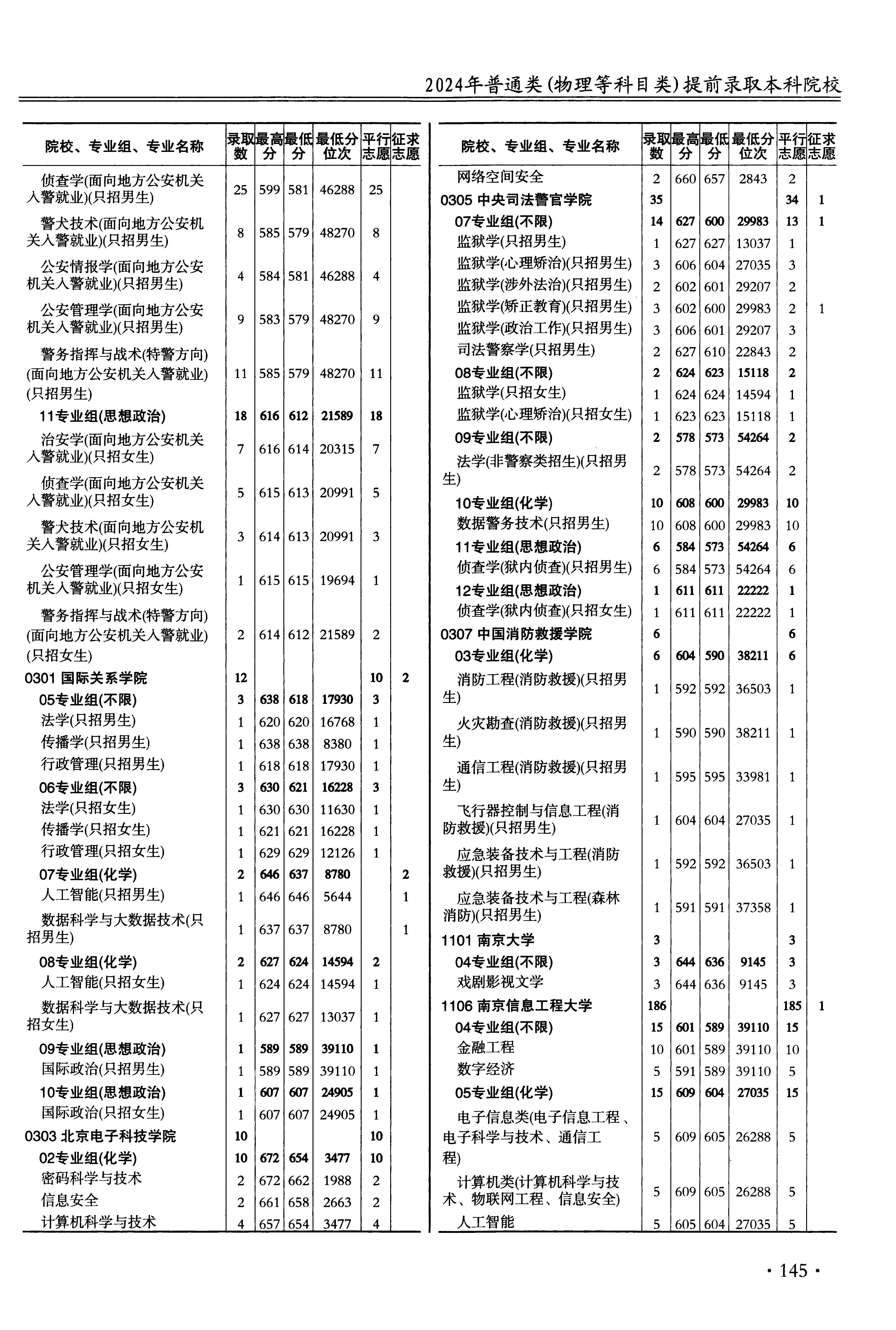 | 院校代码 | 院校名称 | 专业代码 | 专业名称 | 最低分数 | 最低位次 | 专业层次 | 限考科目 | 投档 |