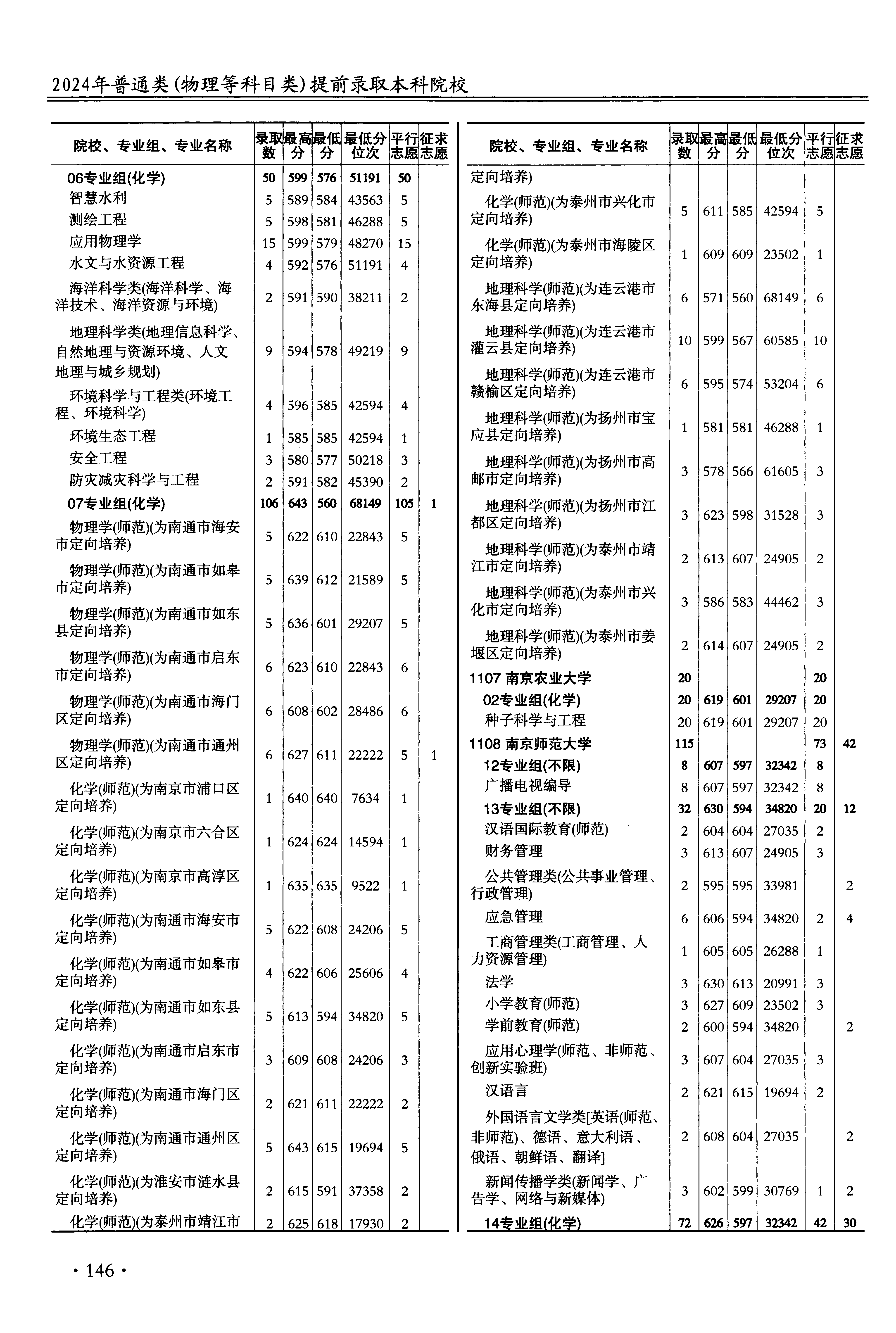 2024年江苏高考普通类本科提前批教师定向计划 南京信息工程大学 的 化学 专业录取分数溯源信息