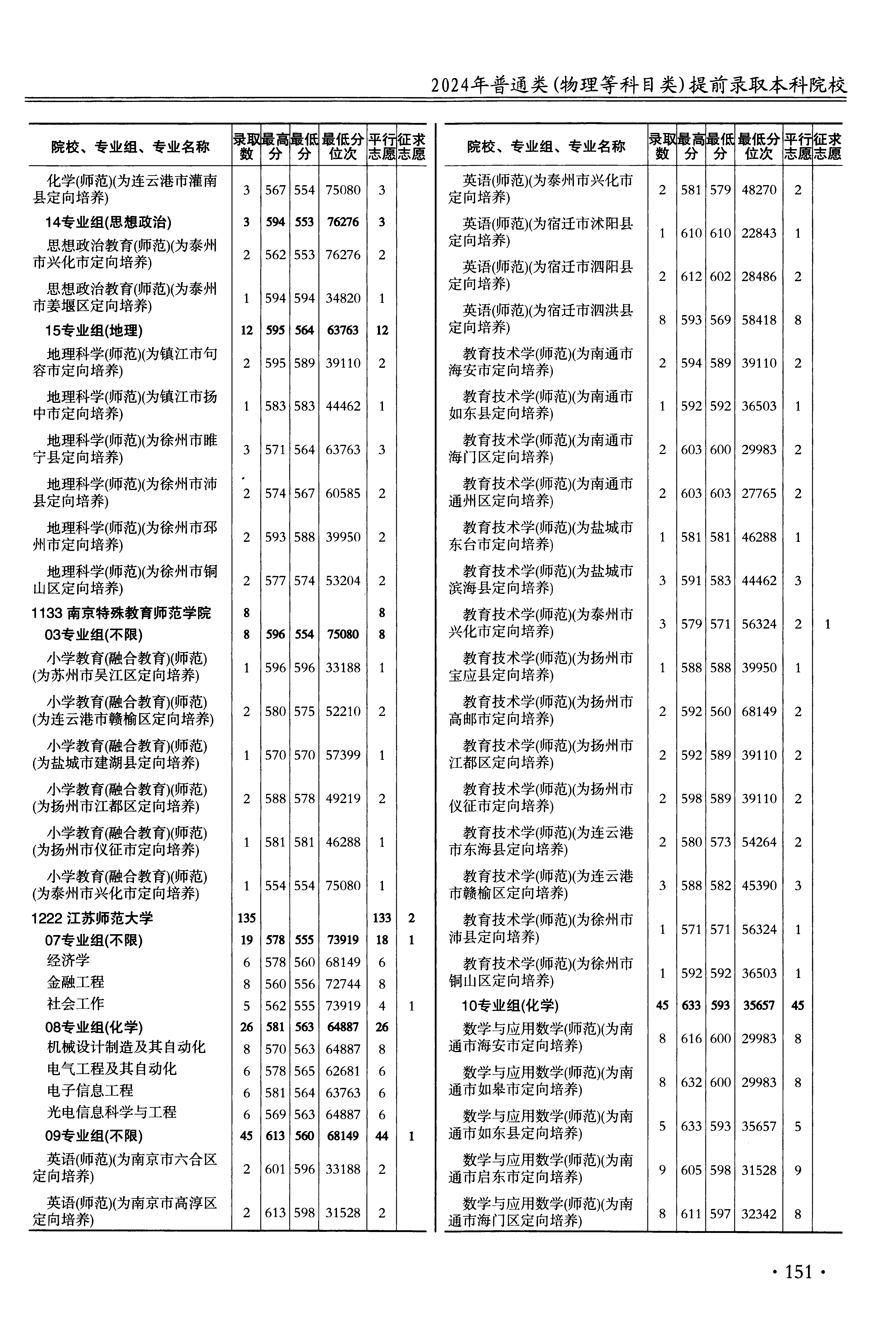 | 1222 | 江苏师范大学 | 49 | 英语(师范)(为南京市高淳区定向培养) | 598 | 31528 | 本科 | 物理 ,再选: 不限 | 1 |