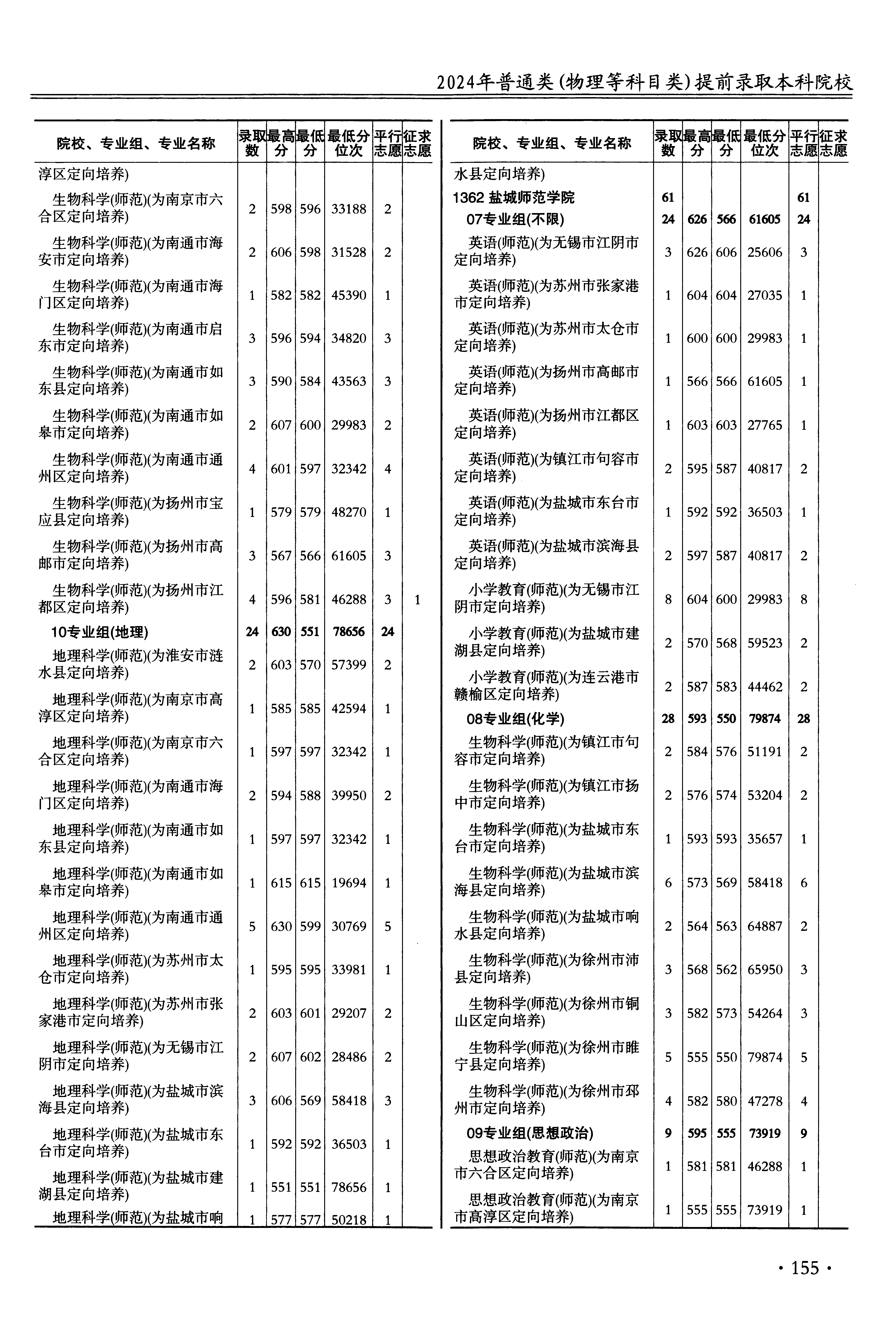 | 1341 | 淮阴师范学院 | A3 | 生物科学(师范)(为扬州市高邮市定向培养) | 566 | 61605 | 本科 | 物理 ,再选: 化学 | 1 |