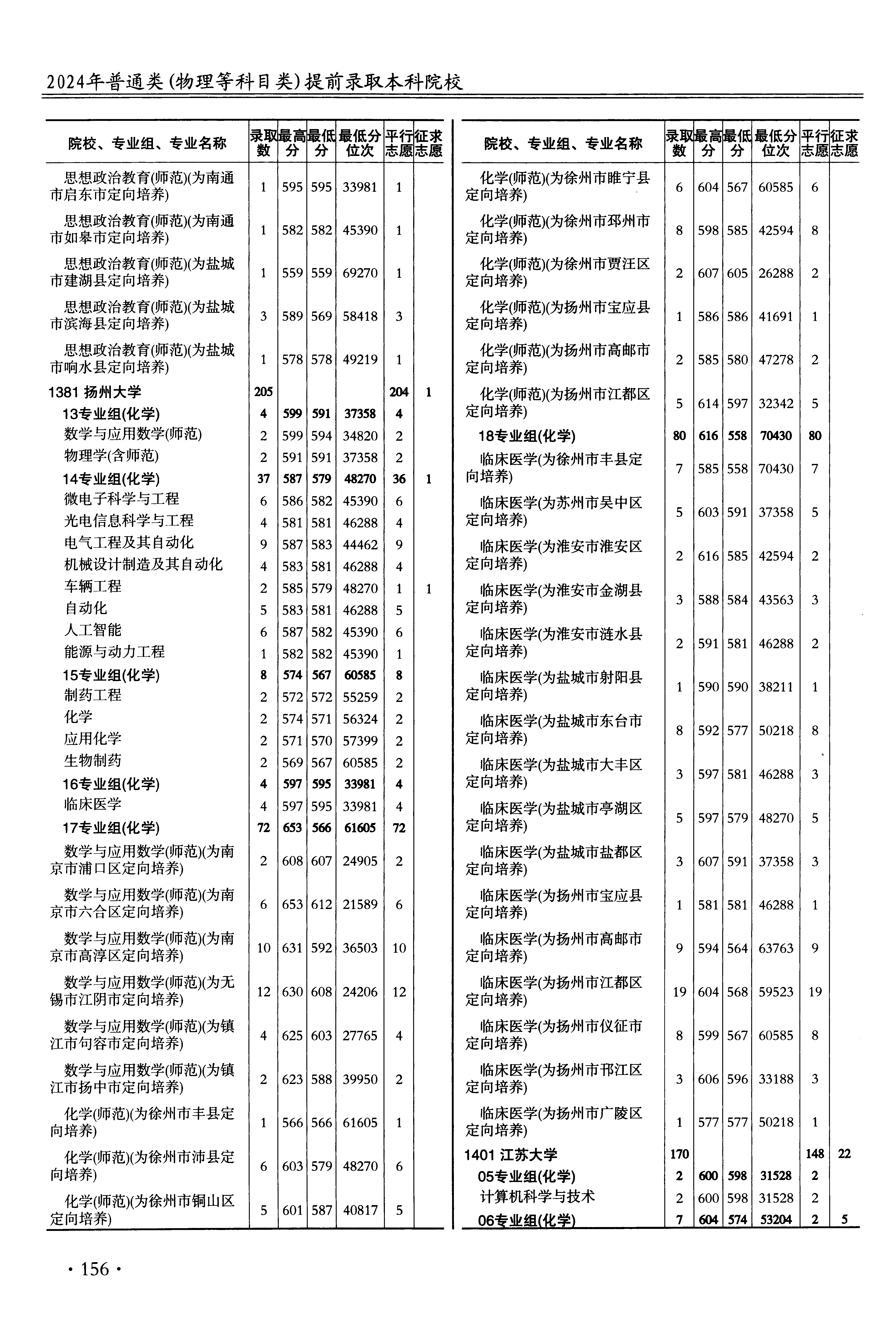 | 1401 | 江苏大学 | 44 | 临床医学(为镇江市丹阳市定向培养) | 573 | 54264 | 本科 | 物理 ,再选: 化学 | 1 |