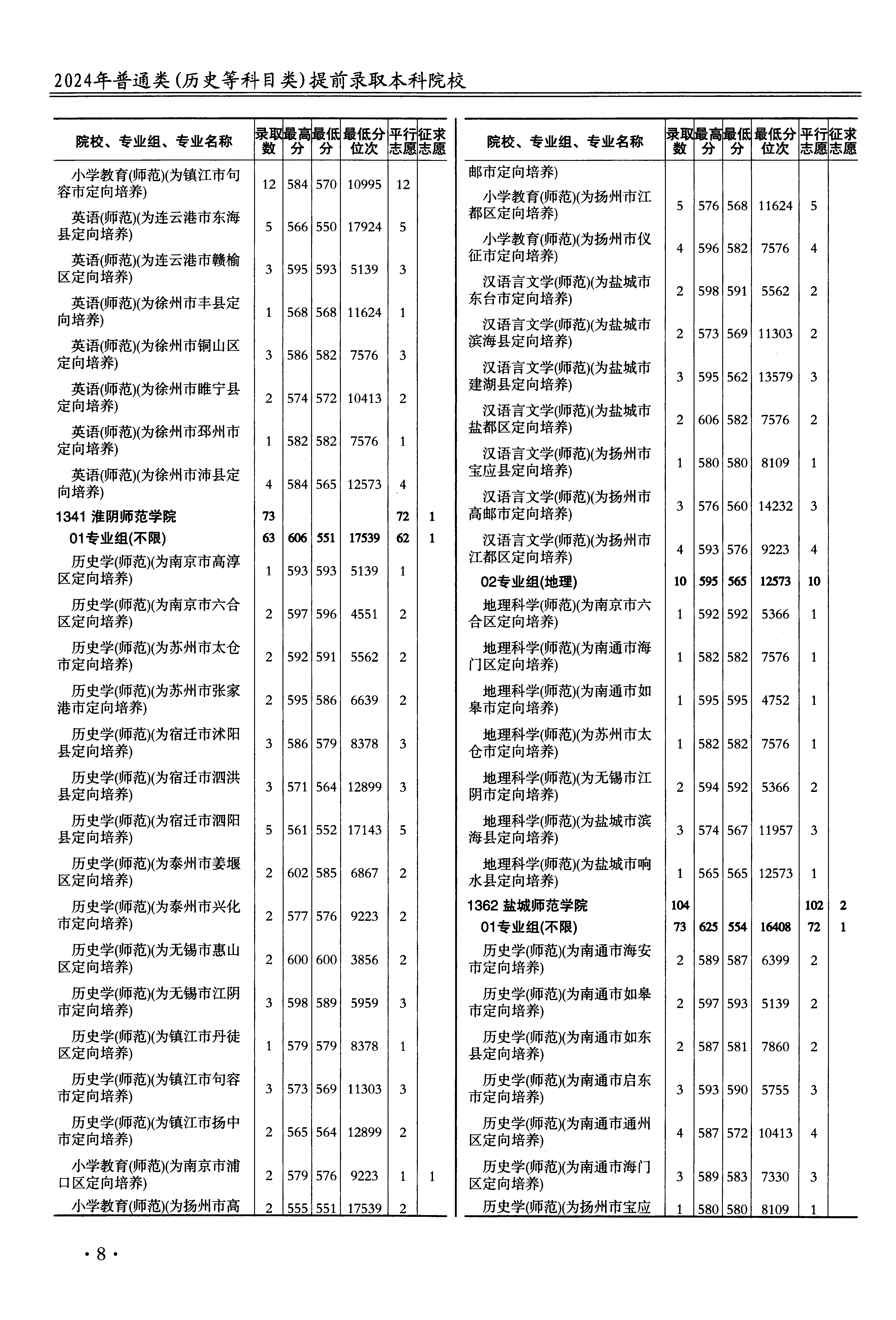 2024年江苏高考普通类本科提前批教师定向计划 淮阴师范学院 的 汉语言文学 专业录取分数溯源信息