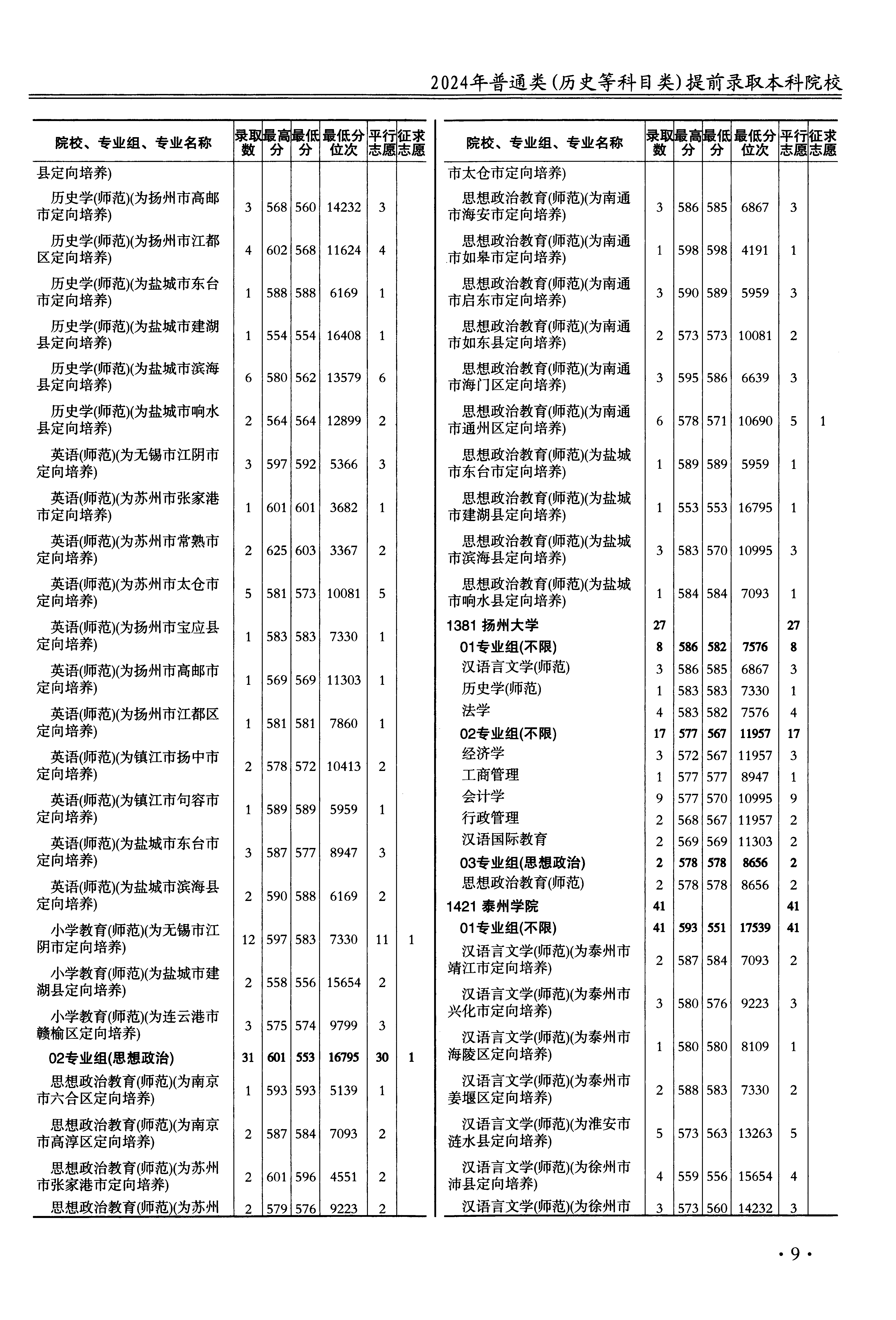 2024年江苏高考普通类本科提前批地方专项计划 扬州大学 的 会计学 专业录取分数溯源信息
