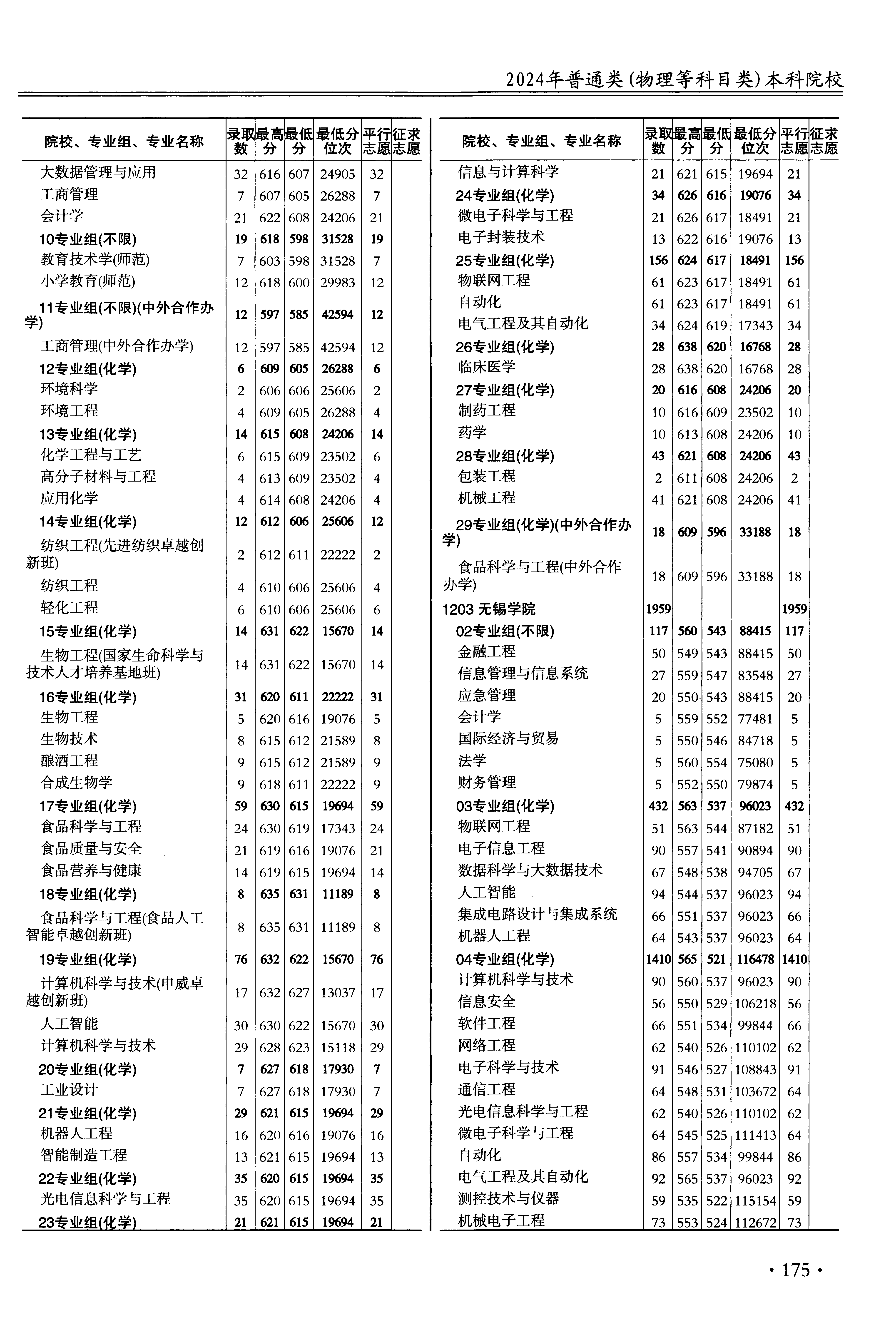 | 1201 | 江南大学 | 21 | 工商管理 | 605 | 26288 | 本科 | 物理 ,再选: 不限 | 1 |