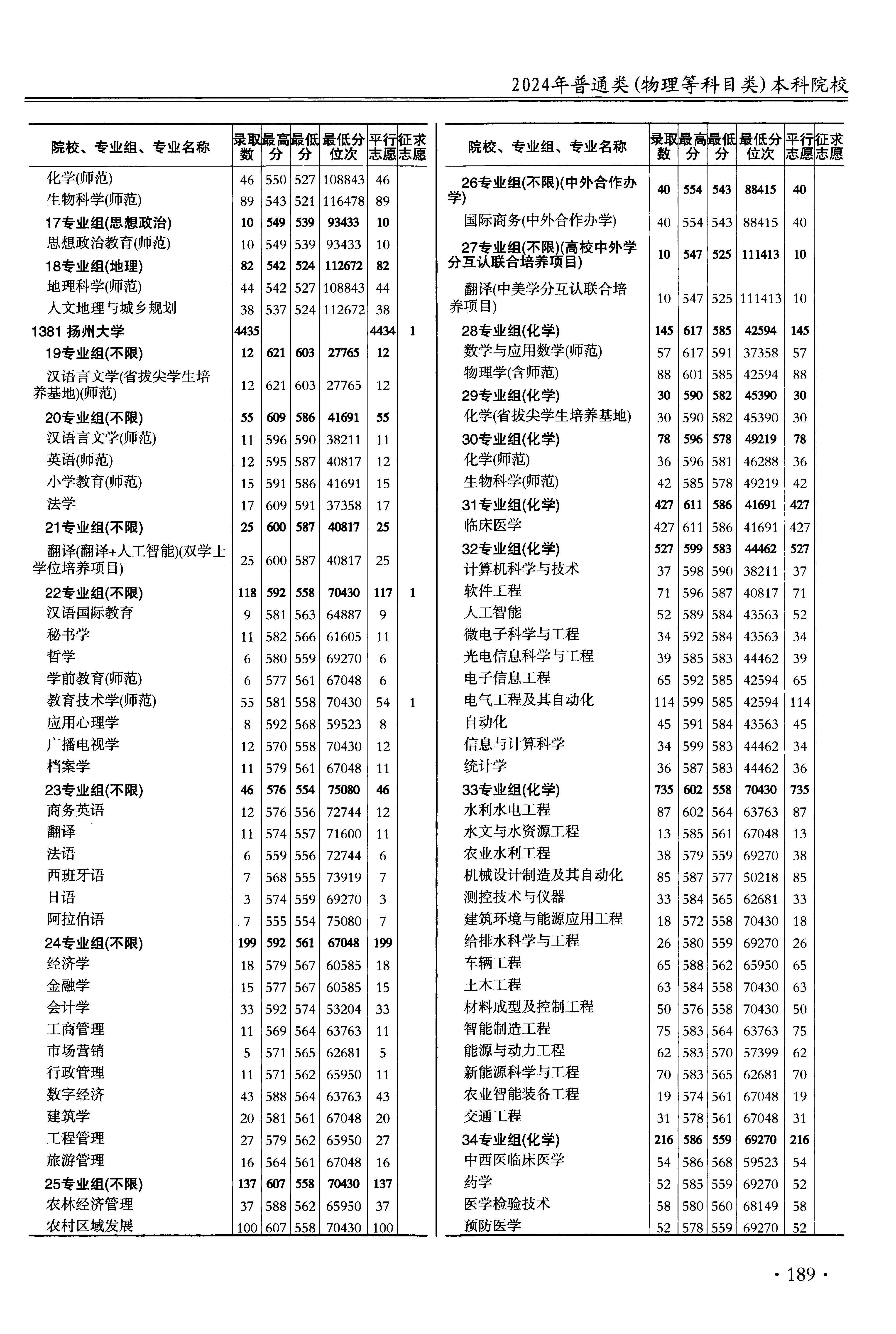 2024年江苏高考普通类本科批 扬州大学 的 建筑学 专业录取分数溯源信息