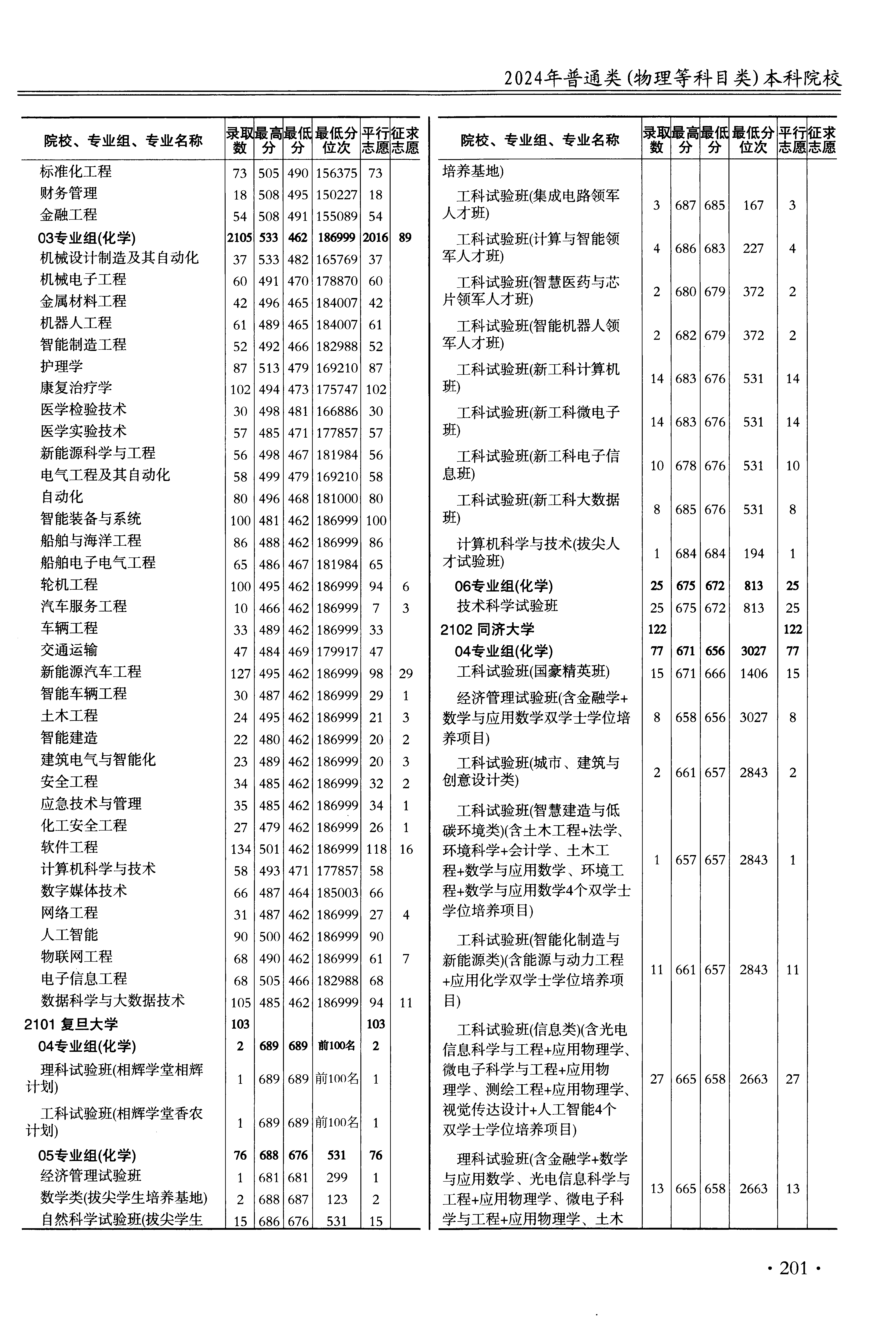 2024年江苏高考普通类本科批 同济大学 的 工科试验班 专业录取分数溯源信息
