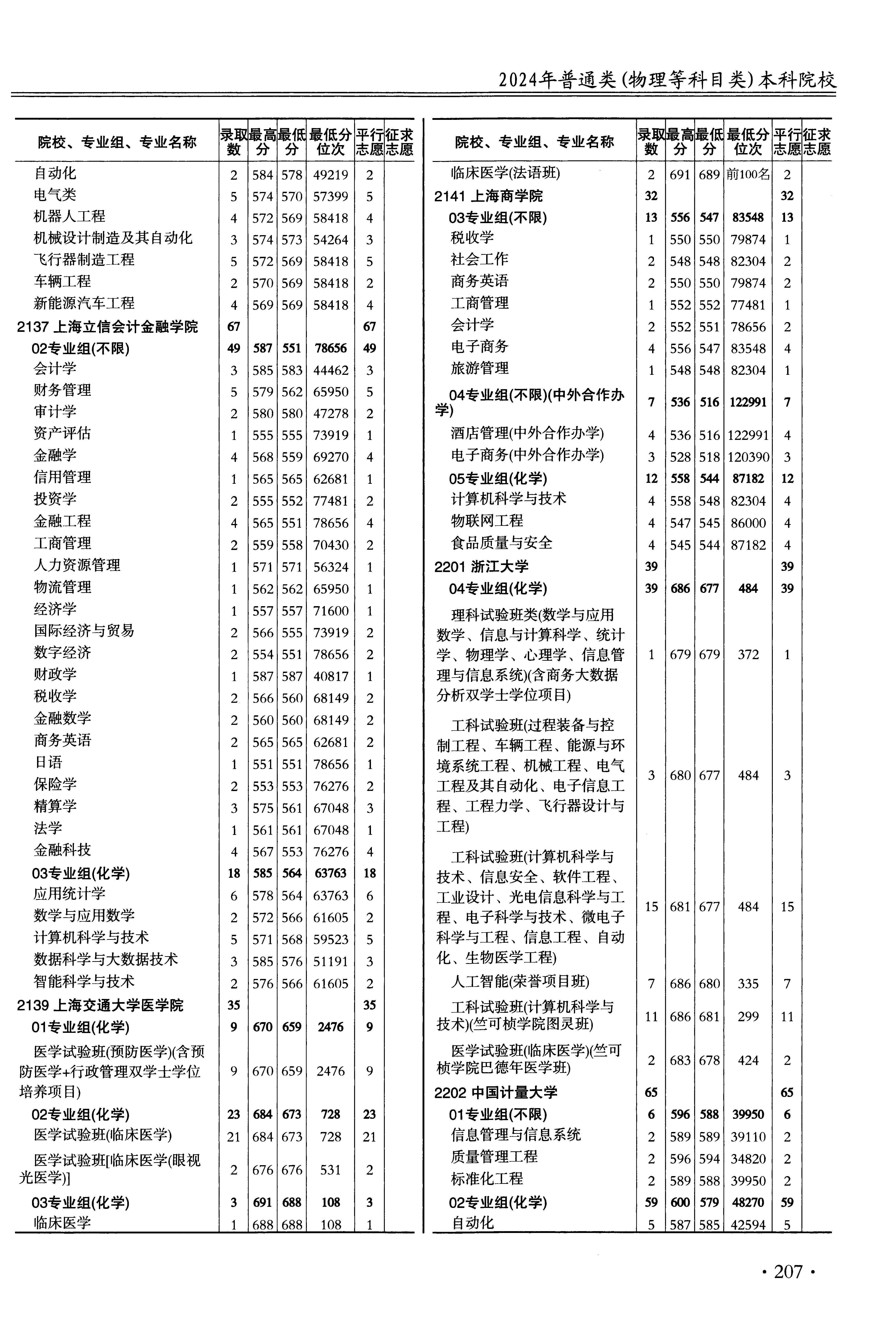 | 2201 | 浙江大学 | 15 | 工科试验班(计算机科学与技术。信息安全。软件工程,工业设计、光电信息科学与工程、电子科学与技术、微电子科学与工程、信息工程、自动化。生物医学工程) | 677 | 484 | 本科 | 物理 ,再选: 化学 | 1 |