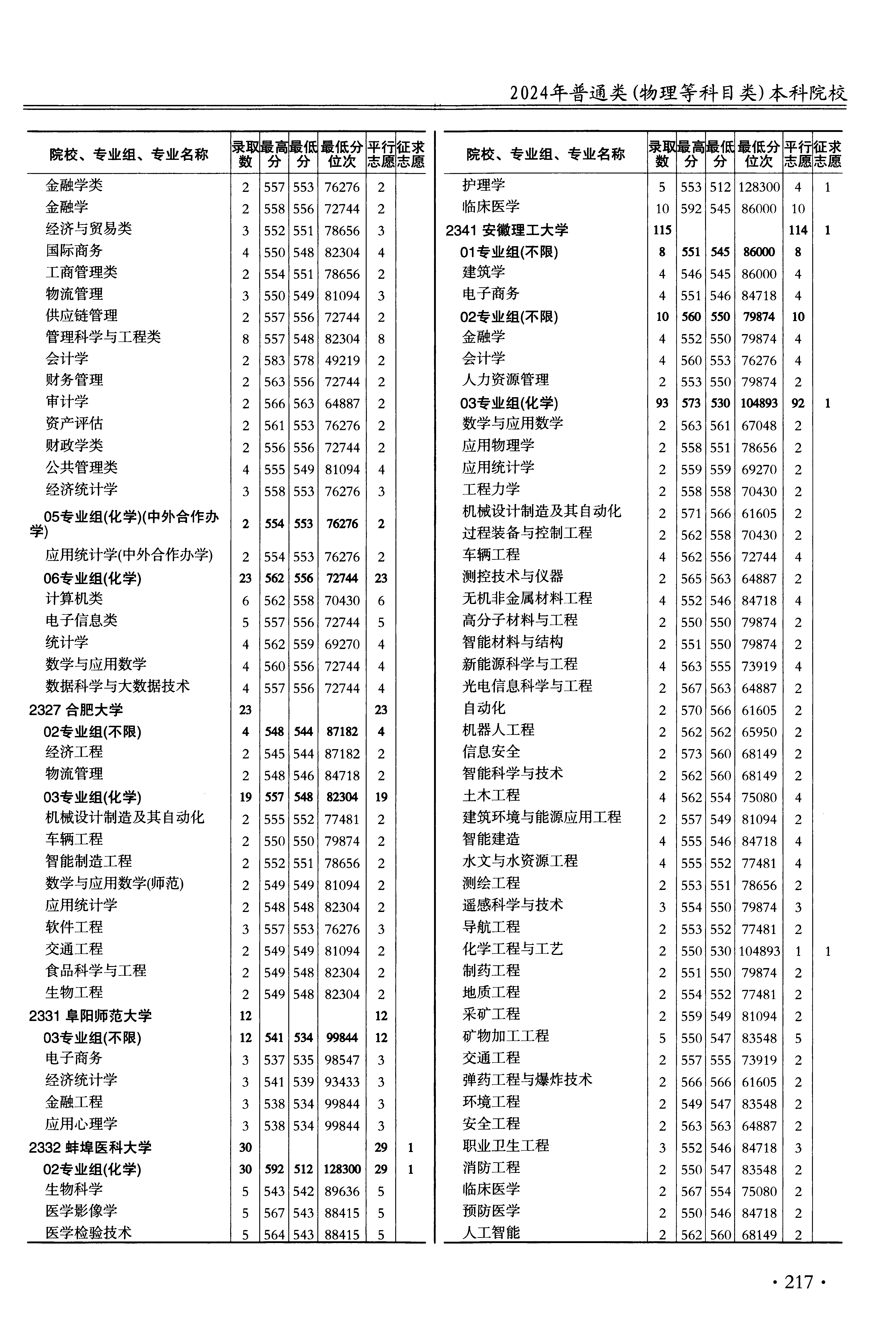 | 2332 | 蚌埠医科大学 | 04 | 医学检验技术 | 543 | 88415 | 本科 | 物理 ,再选: 化学 | 1 |