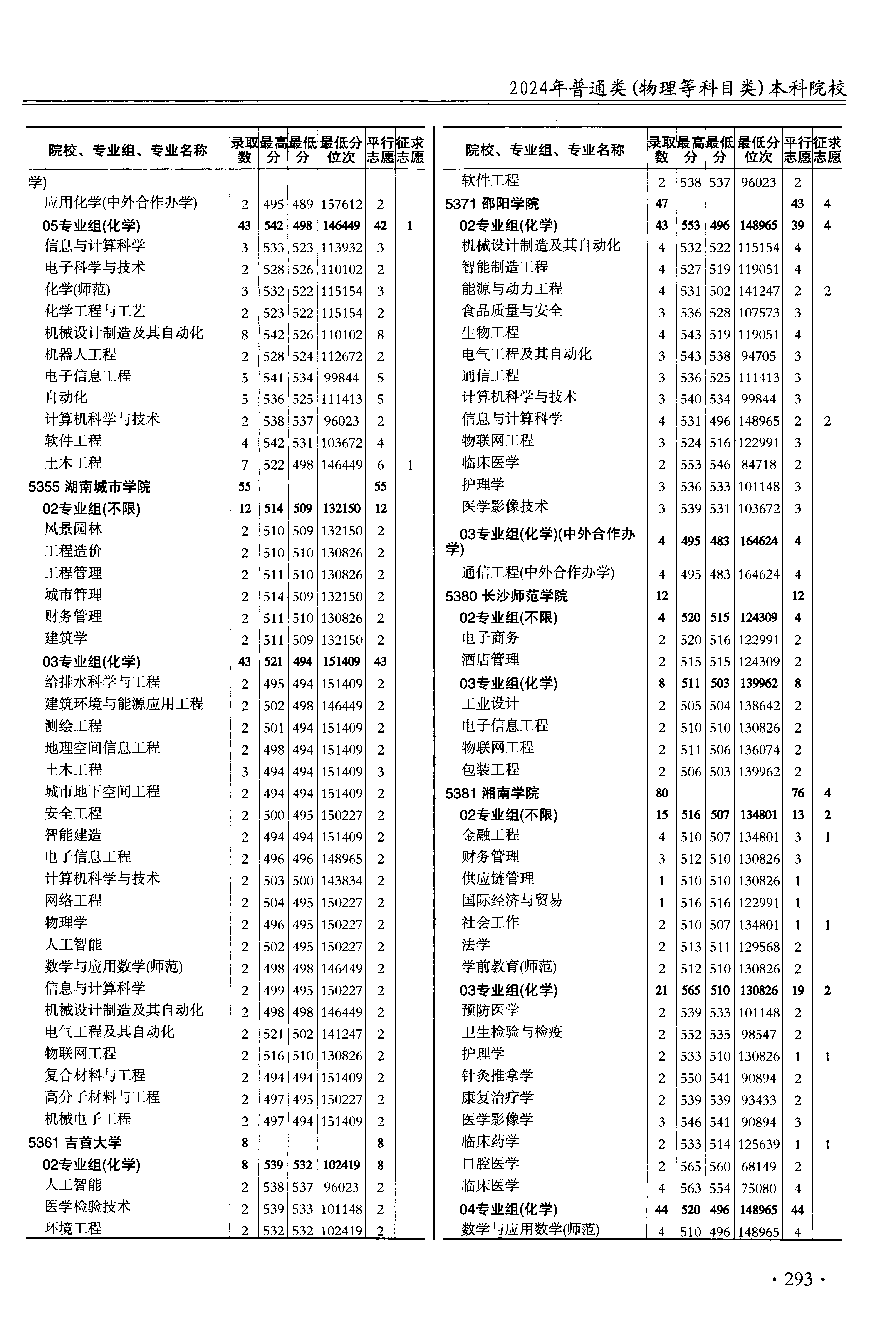 2024年江苏高考普通类本科批 湖南理工学院 的 自动化 专业录取分数溯源信息