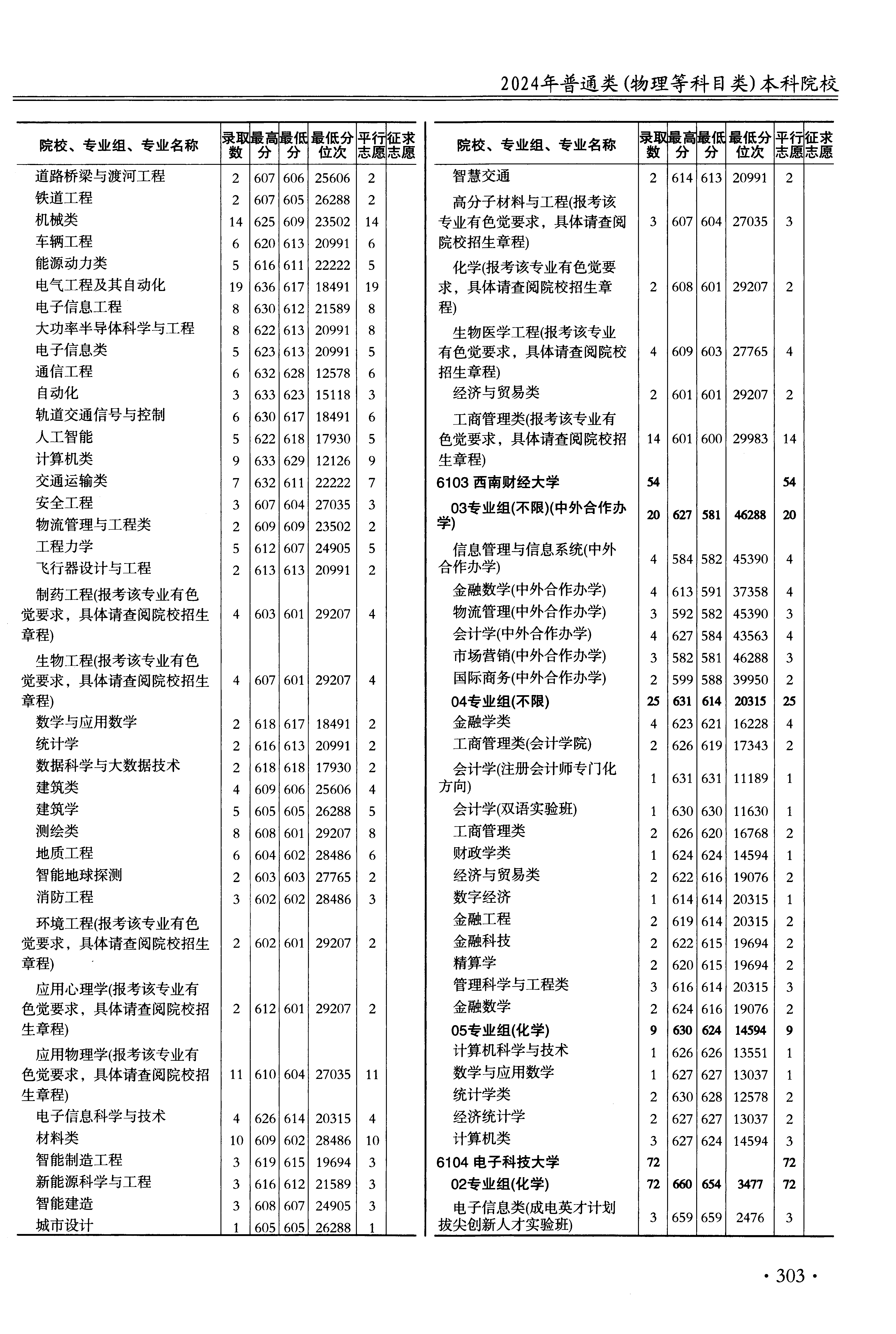 | 6103 | 西南财经大学 | 24 | 数字经济 | 614 | 20315 | 本科 | 物理 ,再选: 不限 | 1 |
