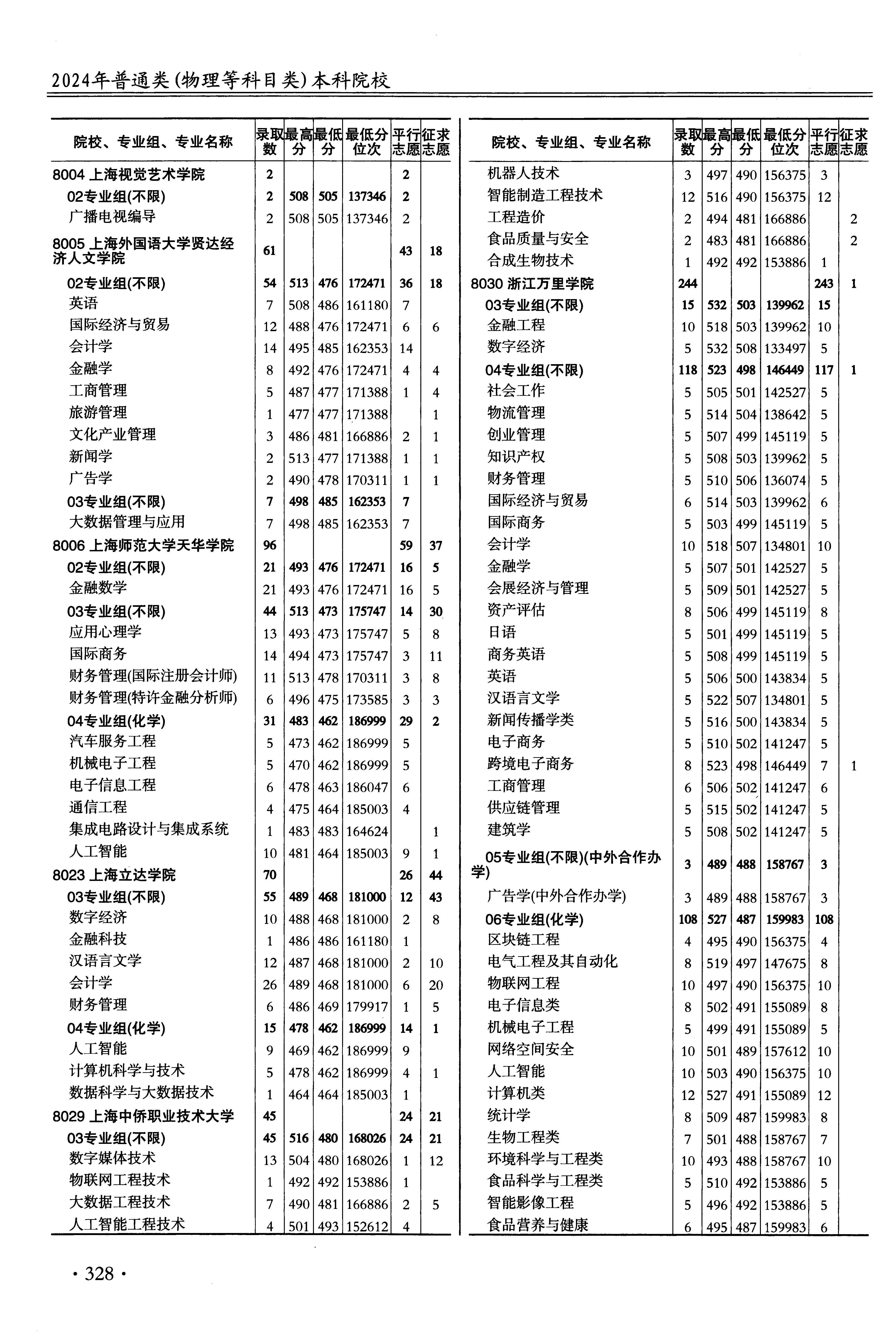 | 院校代码 | 院校名称 | 专业代码 | 专业名称 | 最低分数 | 最低位次 | 专业层次 | 限考科目 | 投档 |