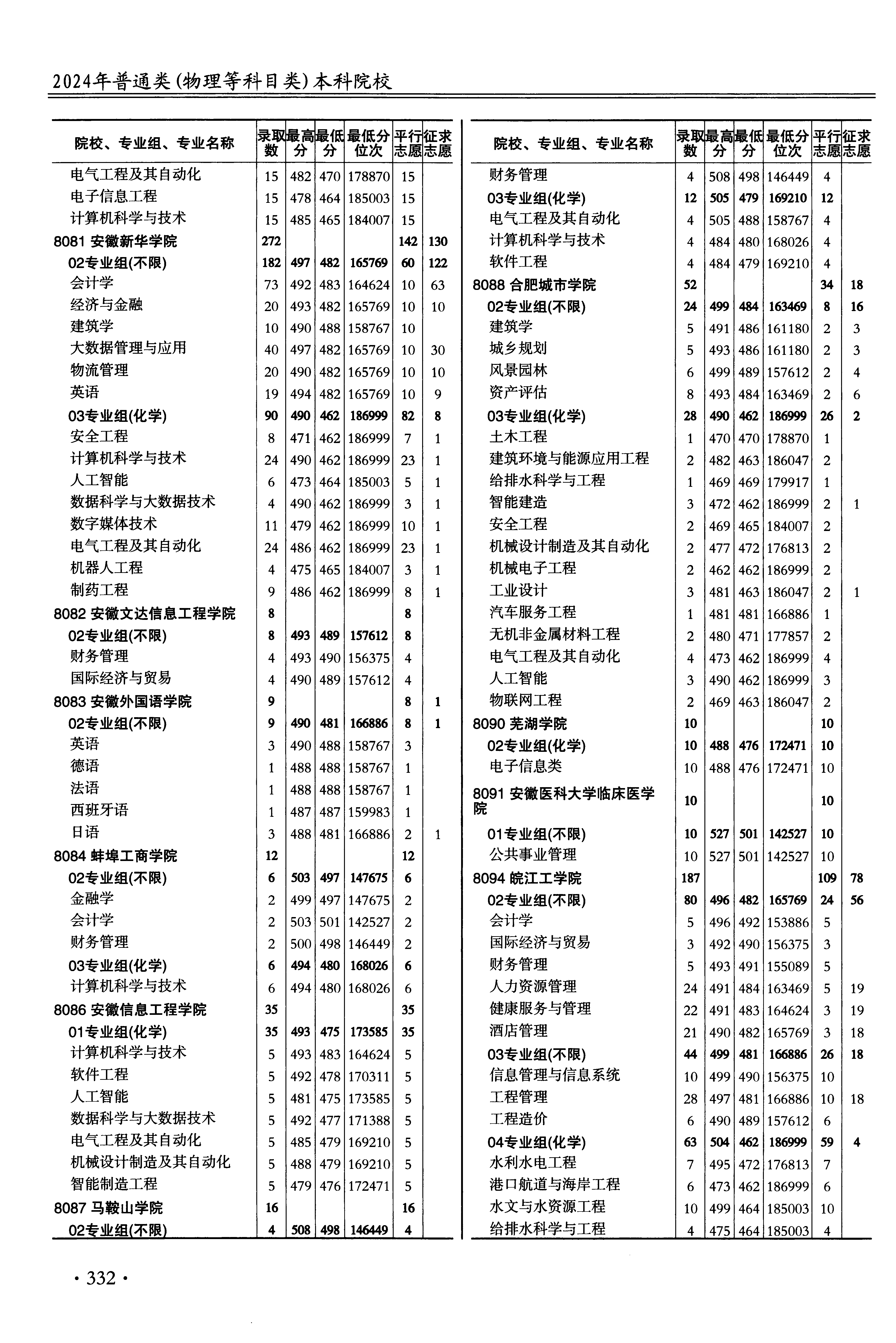 | 8081 | 安徽新华学院 | 06 | 经济与金融 | 482 | 165769 | 本科 | 物理 ,再选: 不限 | 1,2 |