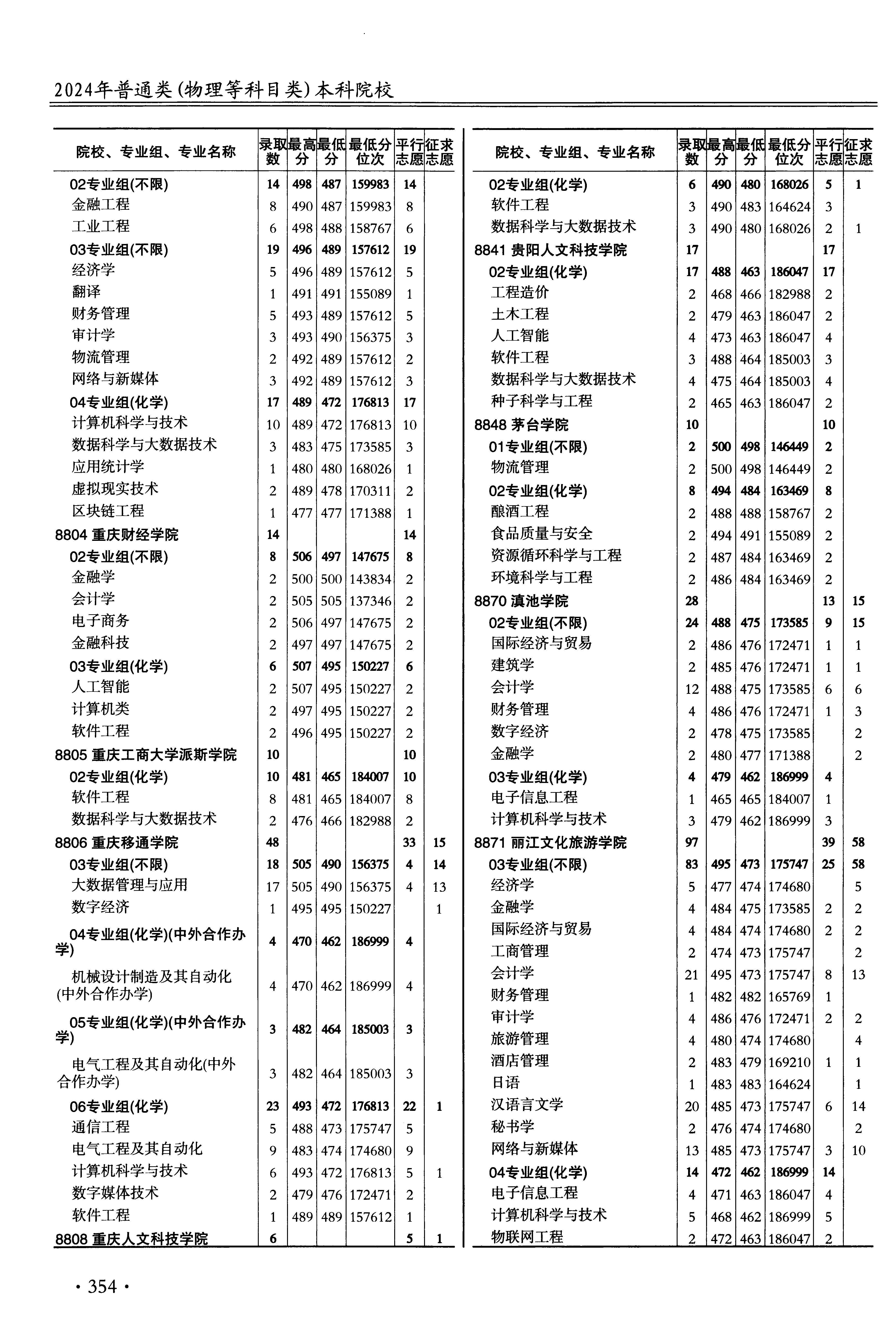 | 8803 | 重庆对外经贸学院 | 21 | 数据科学与大数据技术 | 475 | 173585 | 本科 | 物理 ,再选: 化学 | 1 |