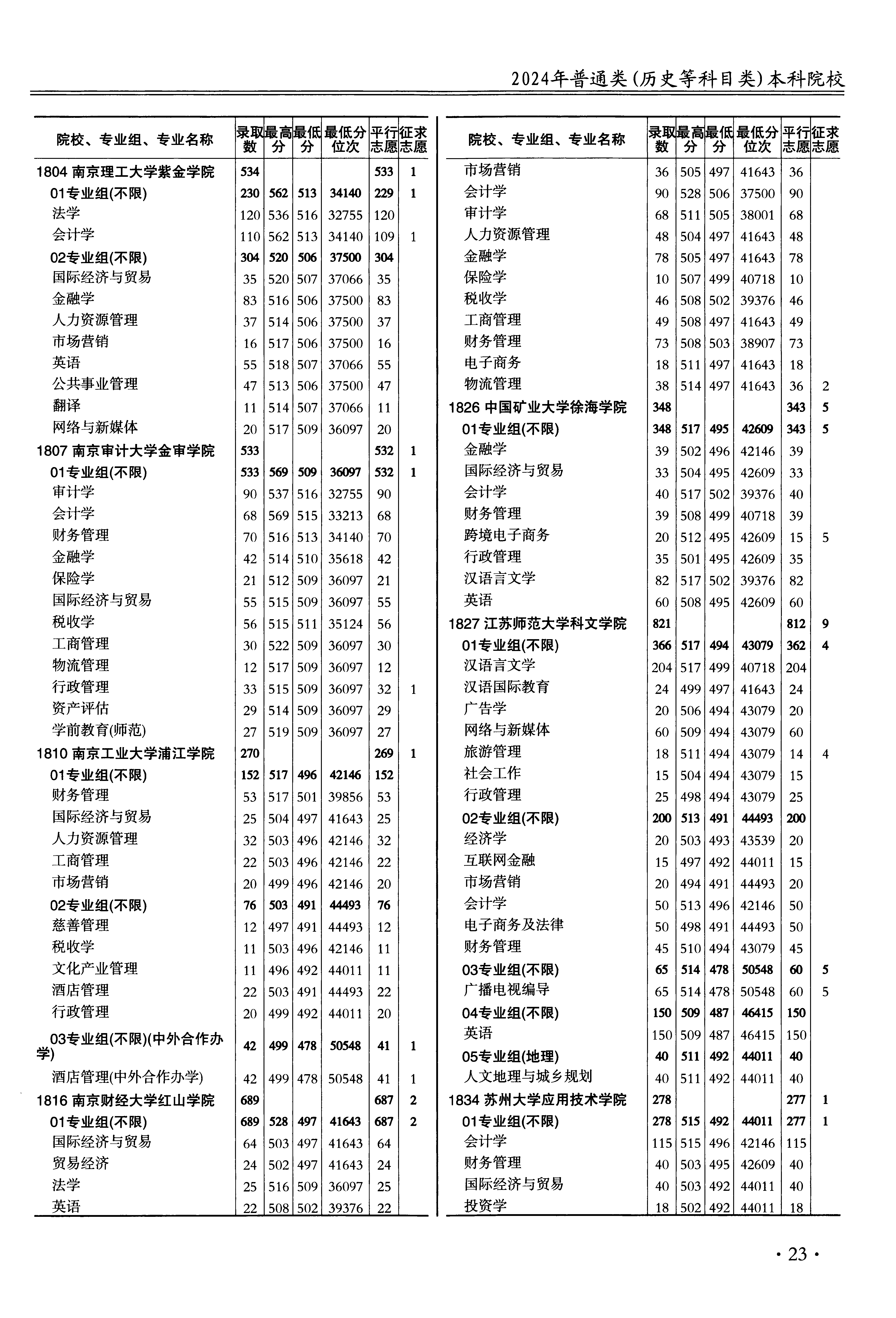 | 1807 | 南京审计大学金审学院 | 07 | 税收学 | 511 | 35124 | 本科 | 历史 ,再选: 不限 | 1 |