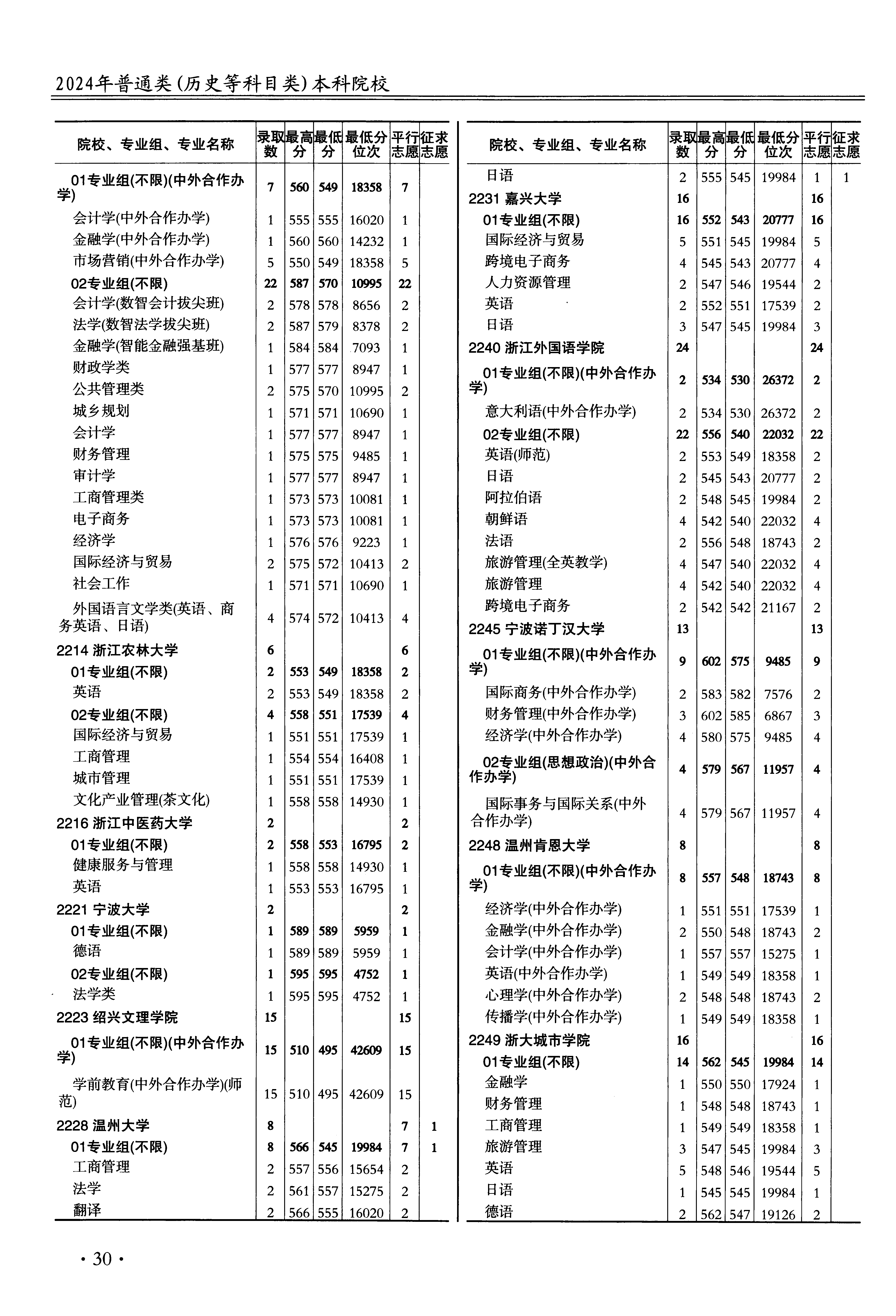 | 2216 | 浙江中医药大学 | 01 | 健康服务与管理 | 558 | 14930 | 本科 | 历史 ,再选: 不限 | 1 |