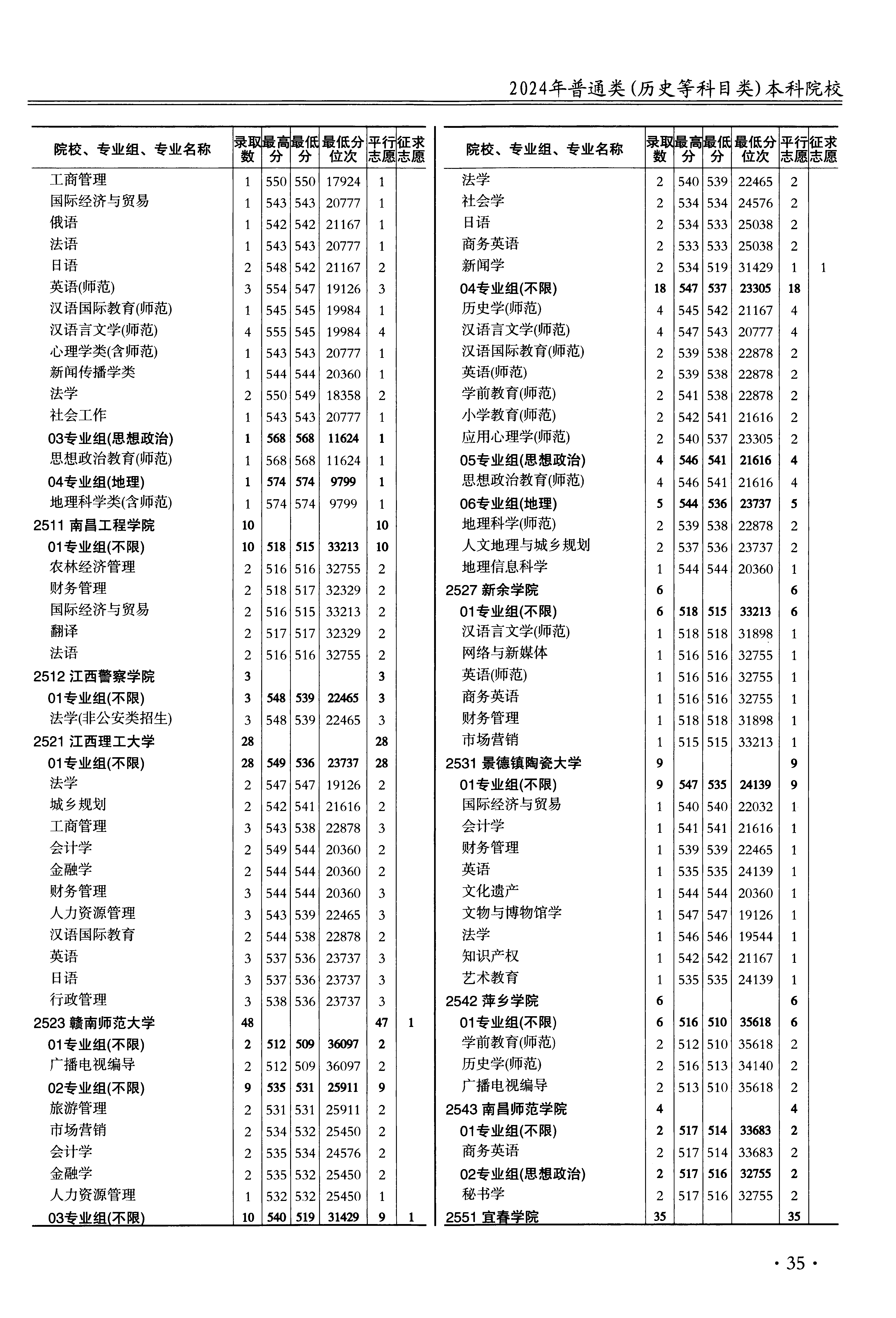 2024年江苏高考普通类本科批 江西理工大学 的 人力资源管理 专业录取分数溯源信息