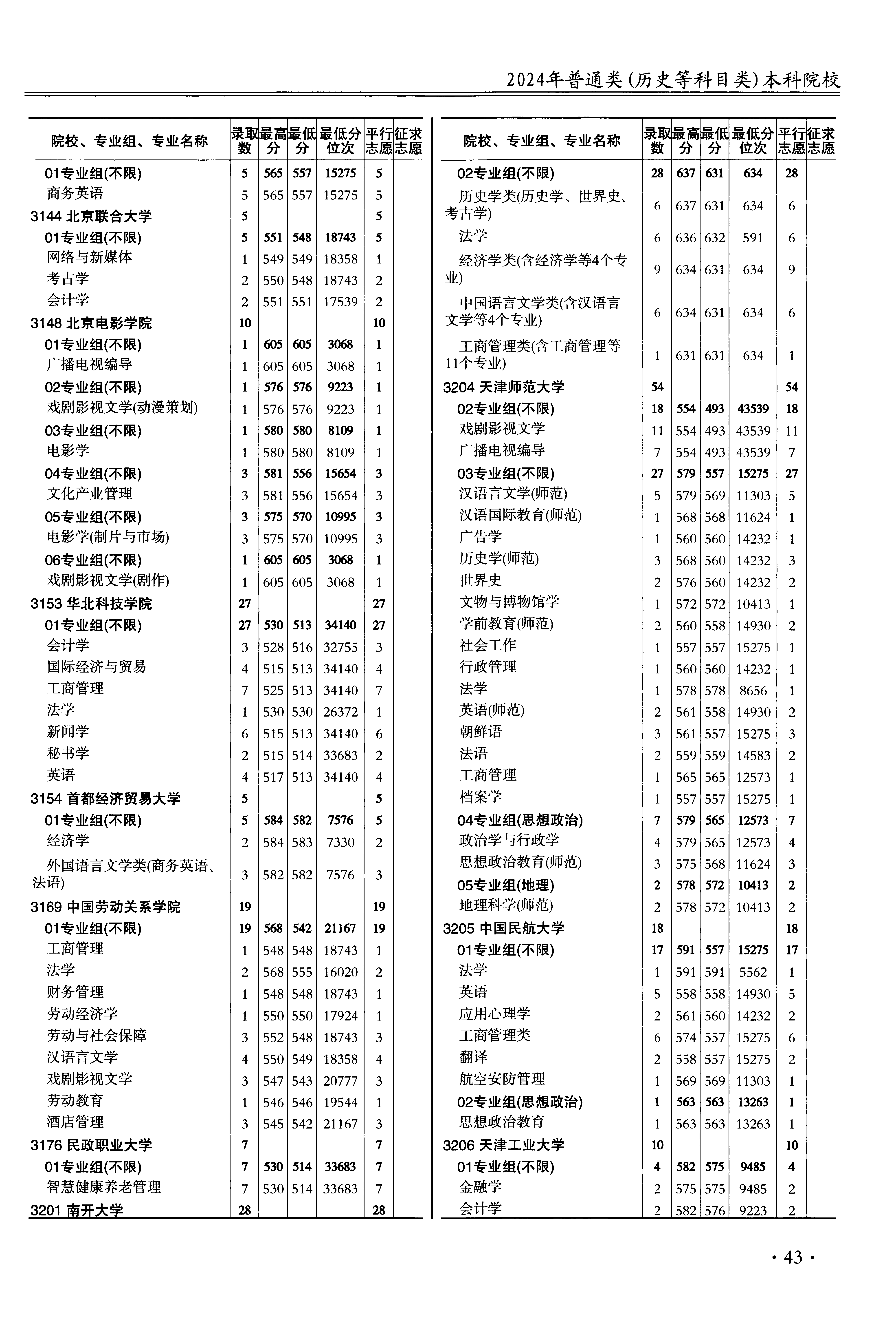| 3201 | 南开大学 | 06 | 中国语言文学类(含汉语言文学等4个专业) | 631 | 634 | 本科 | 历史 ,再选: 不限 | 1 |