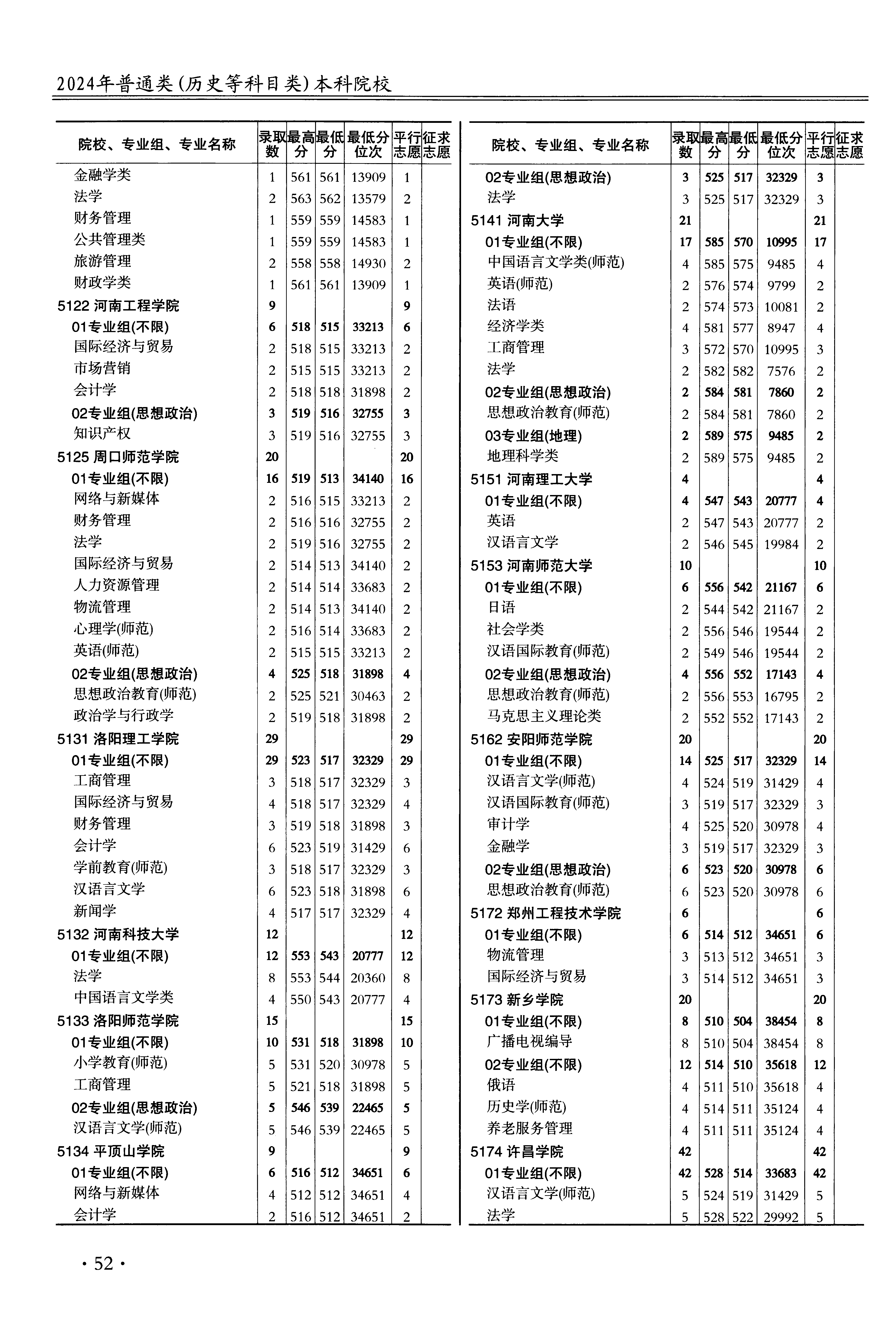 | 5132 | 河南科技大学 | 01 | 法学 | 544 | 20360 | 本科 | 历史 ,再选: 不限 | 1 |