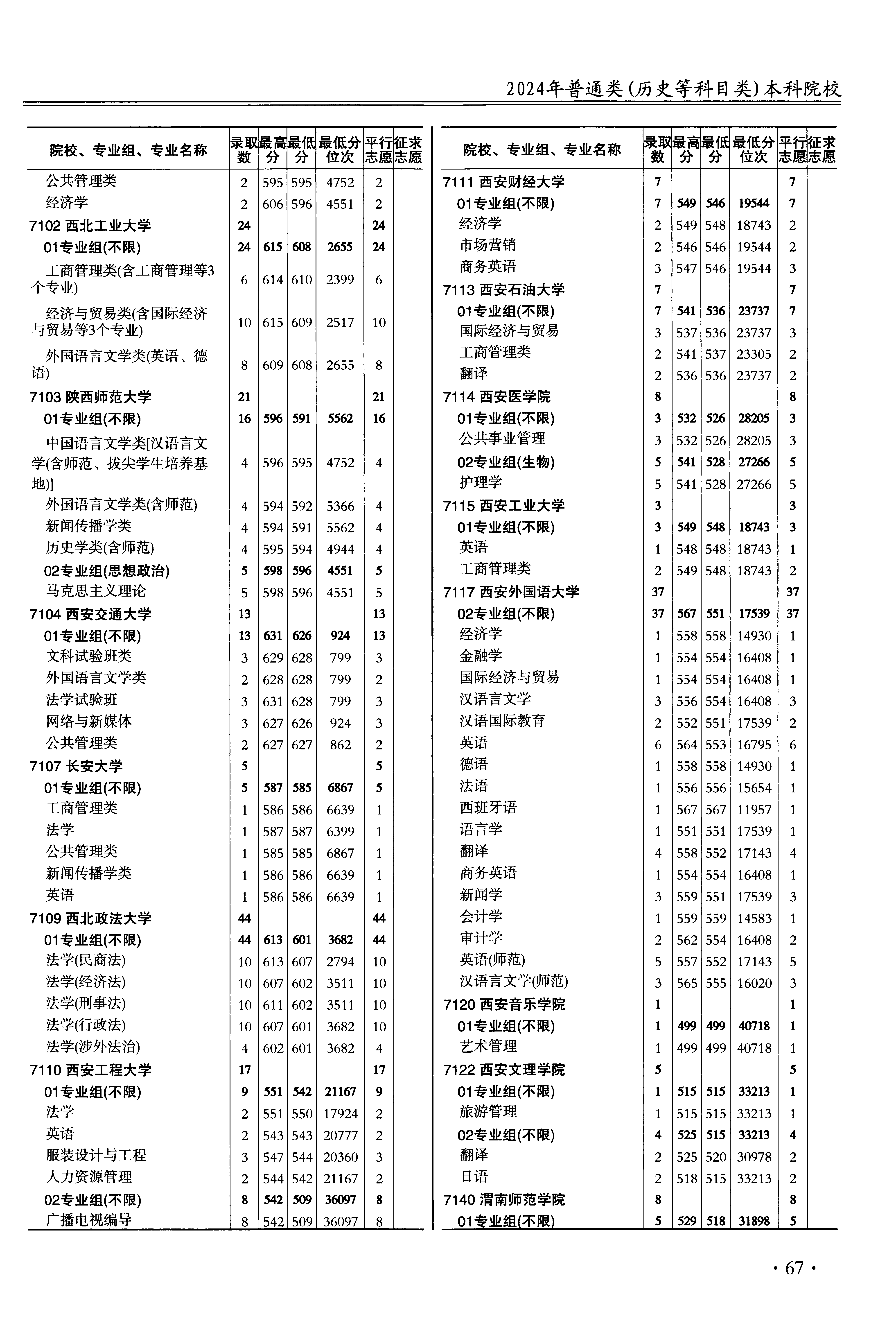 | 7102 | 西北工业大学 | 03 | 外国语言文学类(英语。德语) | 608 | 2655 | 本科 | 历史 ,再选: 不限 | 1 |