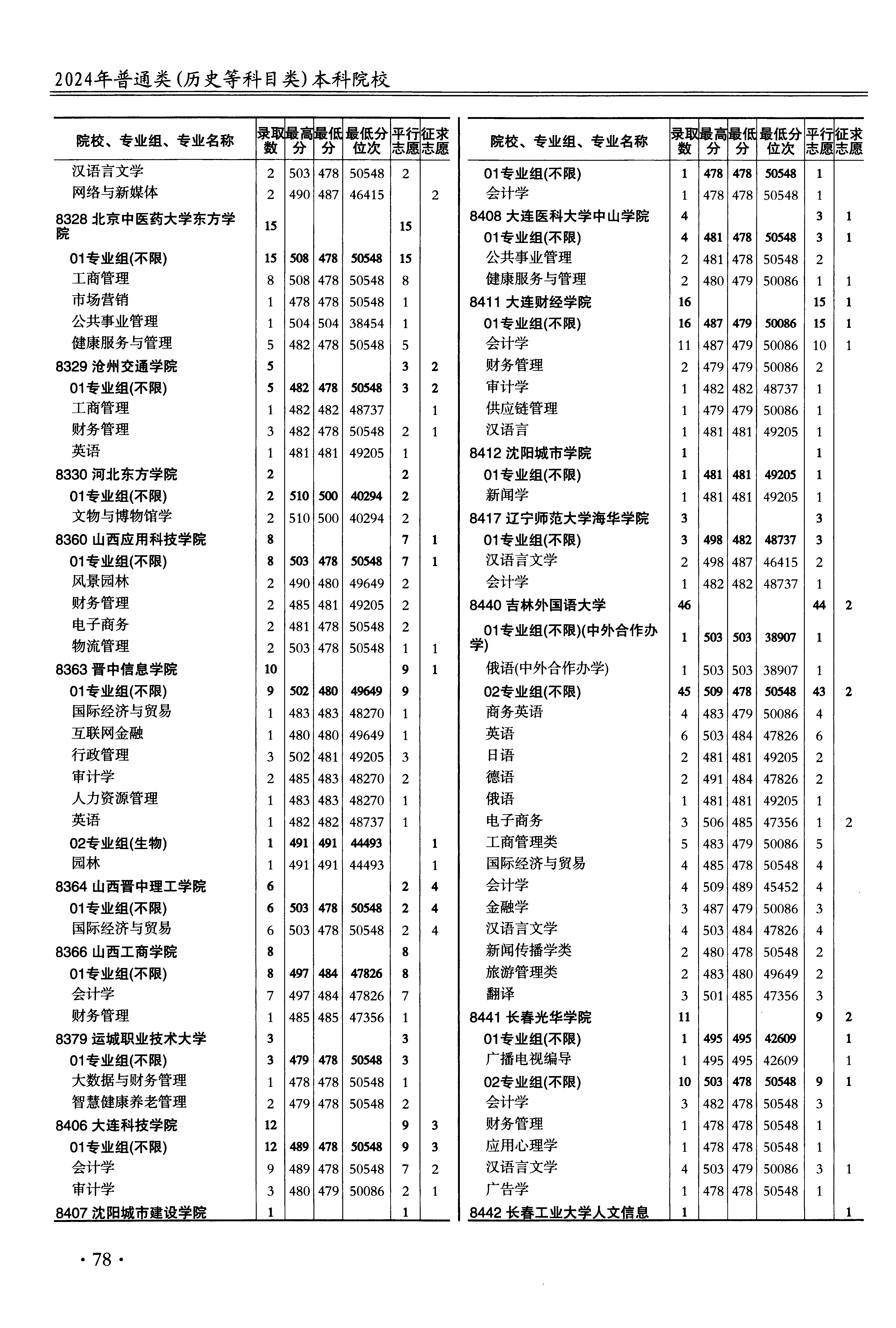 | 院校代码 | 院校名称 | 专业代码 | 专业名称 | 最低分数 | 最低位次 | 专业层次 | 限考科目 | 投档 |