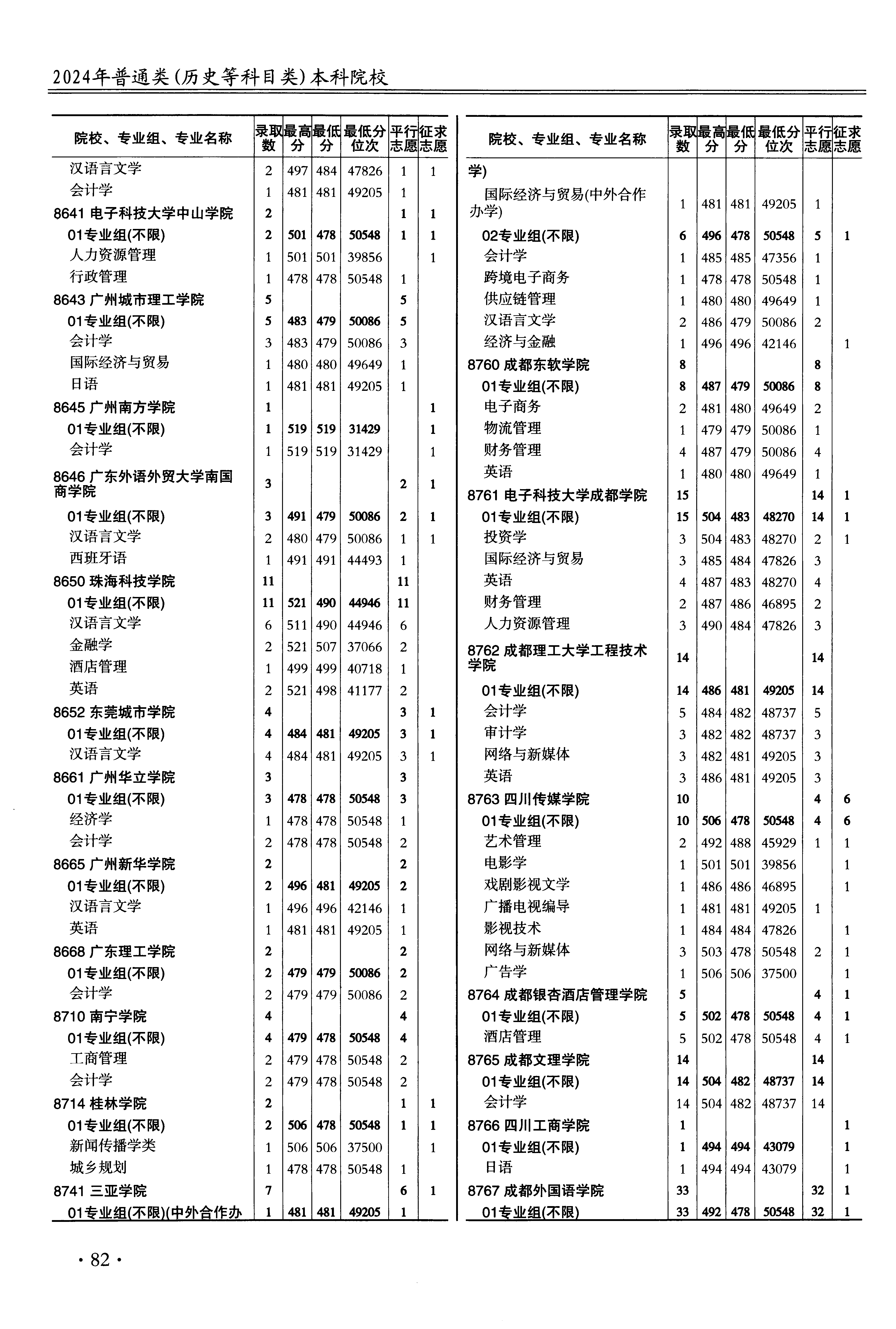 | 8641 | 电子科技大学中山学院 | 05 | 行政管理 | 478 | 50548 | 本科 | 历史 ,再选: 不限 | 1 |