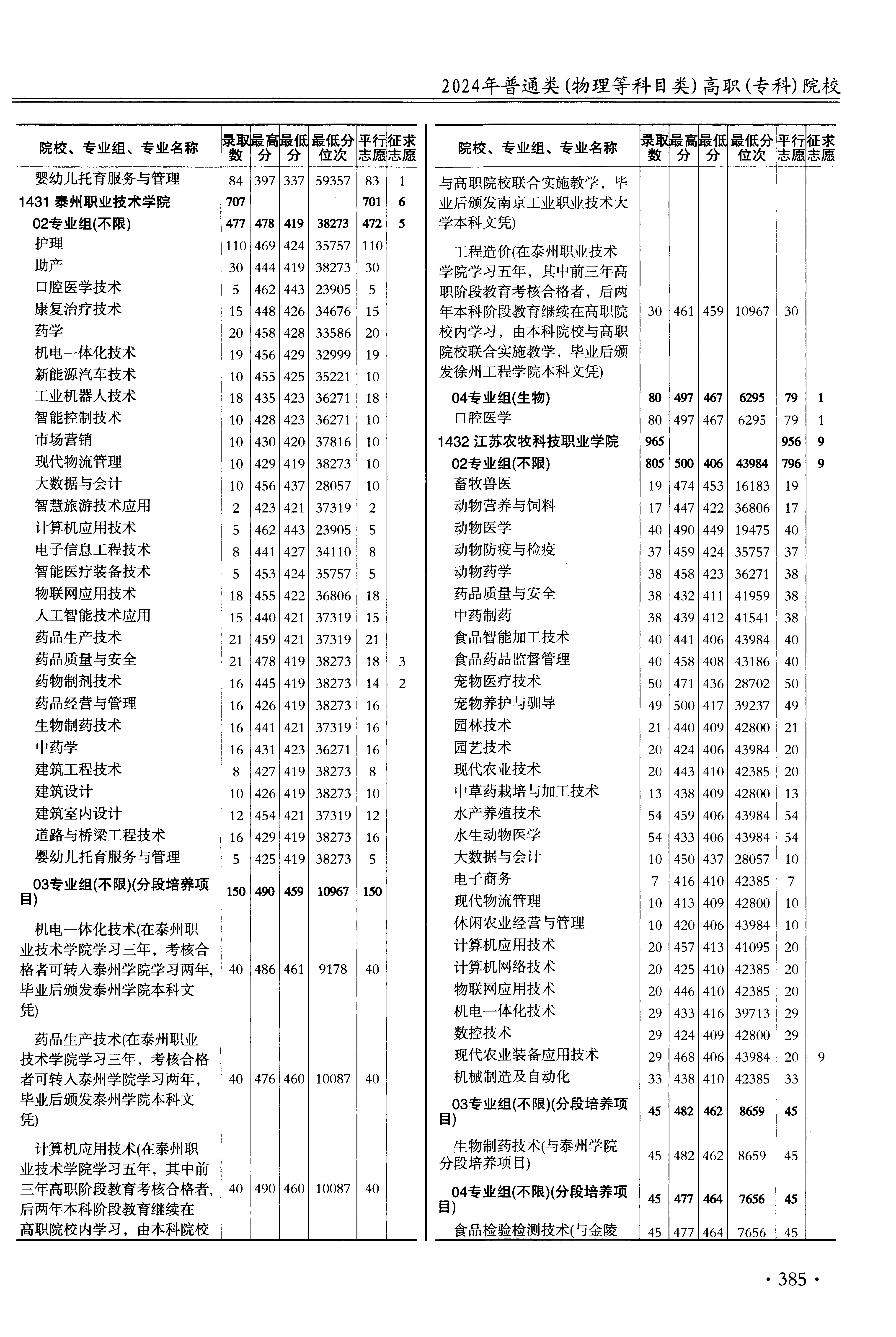 | 1431 | 泰州职业技术学院 | 49 | 药品质量与安全 | 419 | 38273 | 专科 | 物理 ,再选: 不限 | 1,2 |