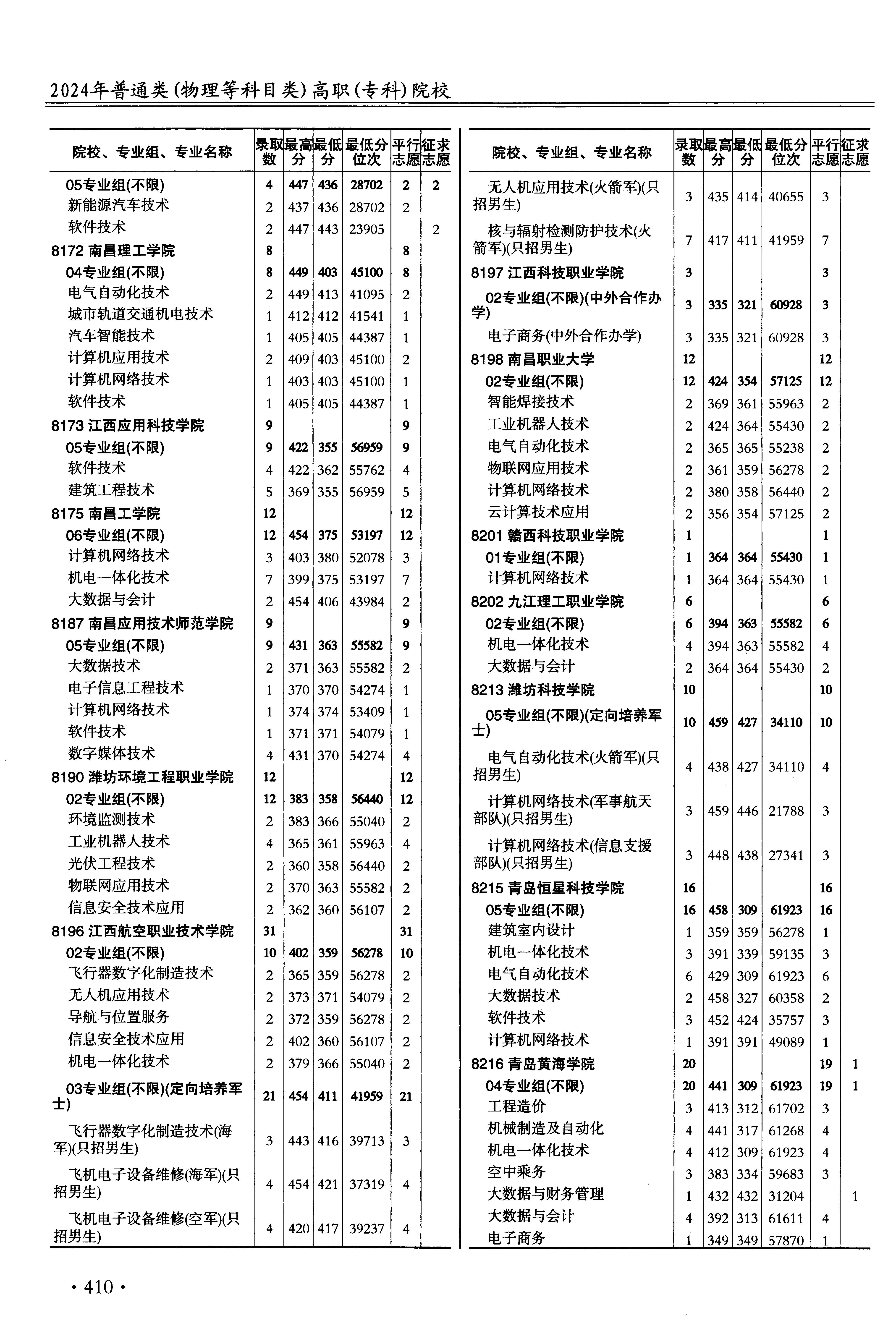 | 8175 | 南昌工学院 | 34 | 大数据与会计 | 406 | 43984 | 专科 | 物理 ,再选: 不限 | 1 |