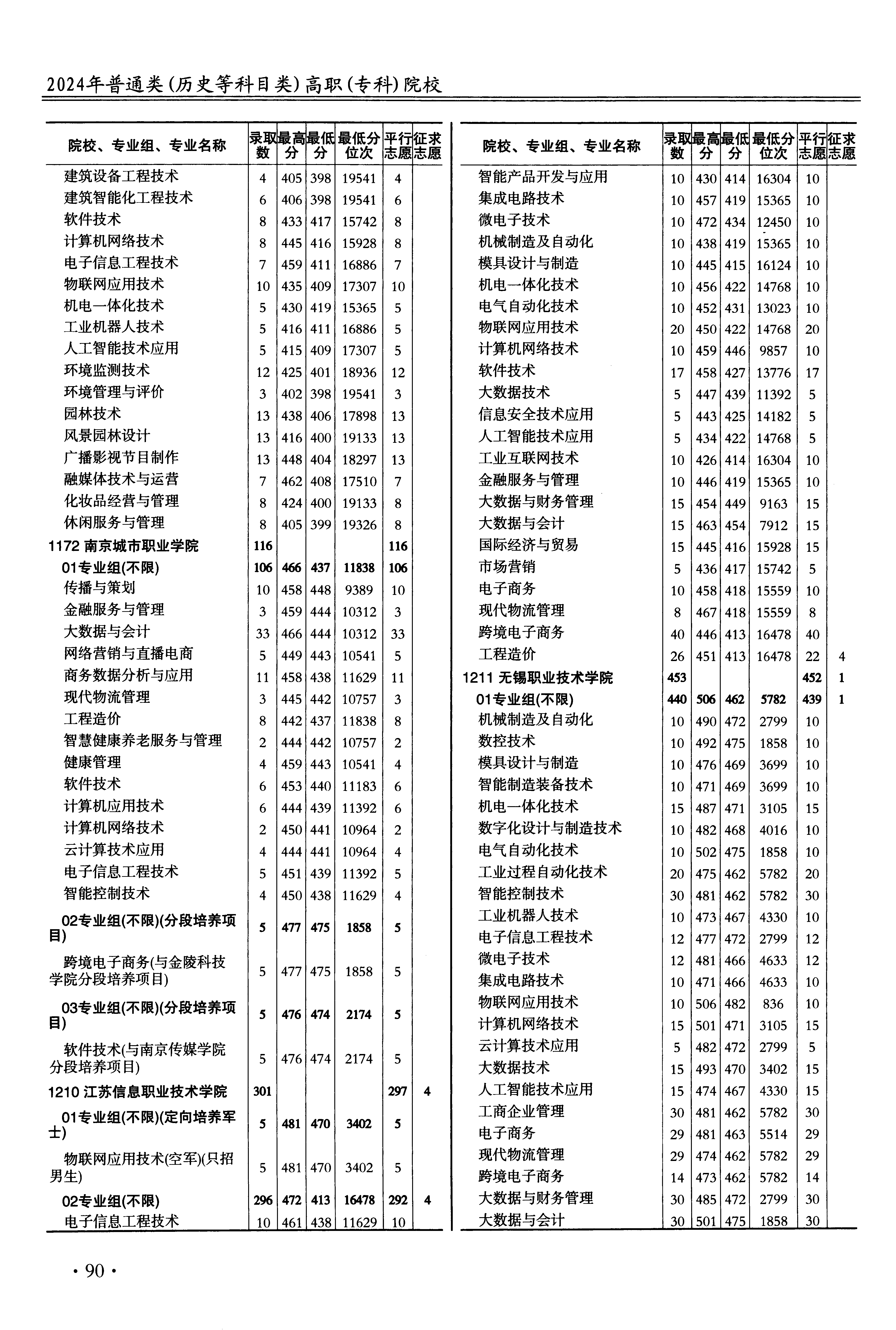 2024年江苏高考普通类高职(专科)批 无锡职业技术学院 的 大数据与财务管理 专业录取分数溯源信息