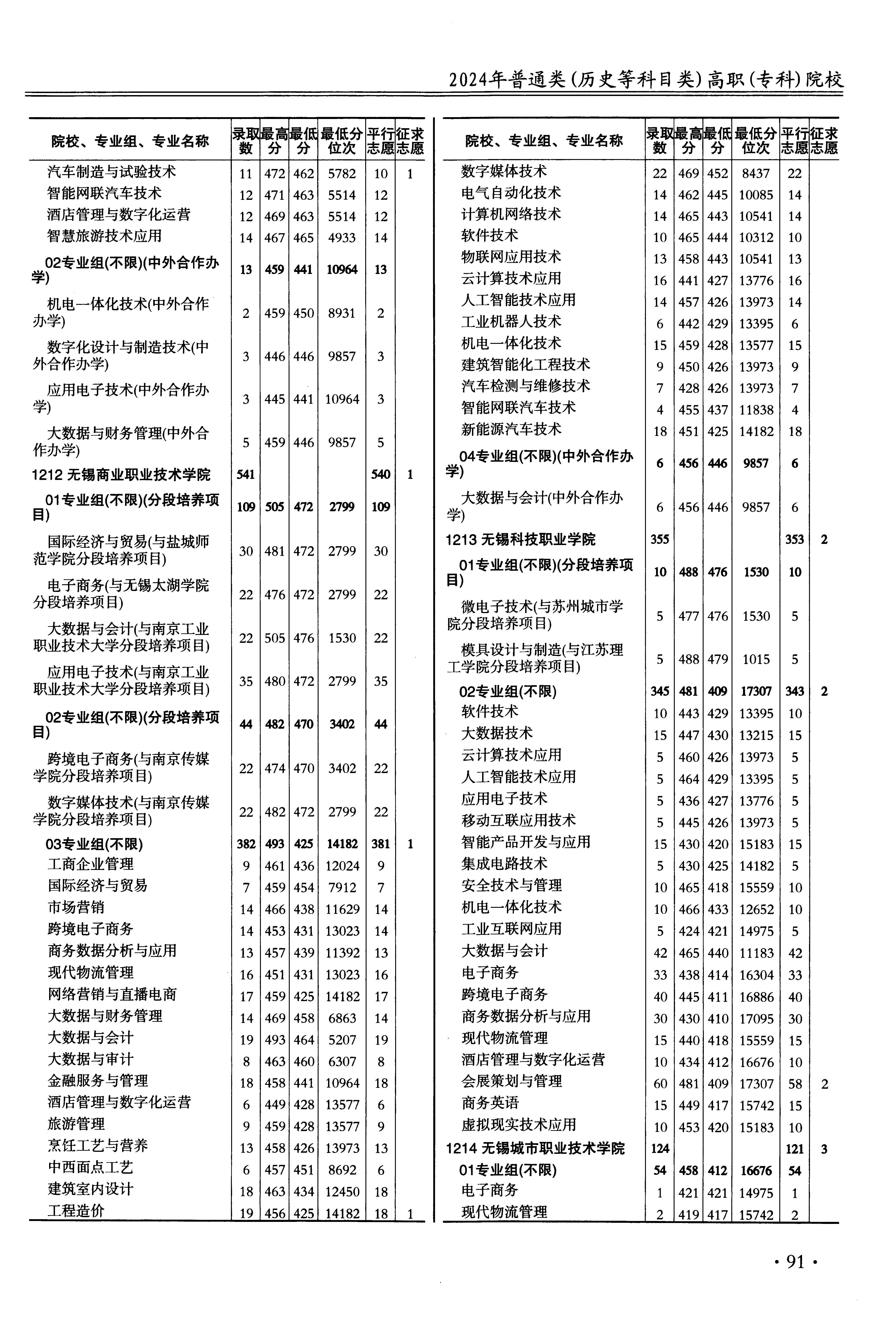 | 1211 | 无锡职业技术学院 | 32 | 大数据与财务管理(中外合作办学) | 446 | 9857 | 专科 | 历史 ,再选: 不限 | 1 |