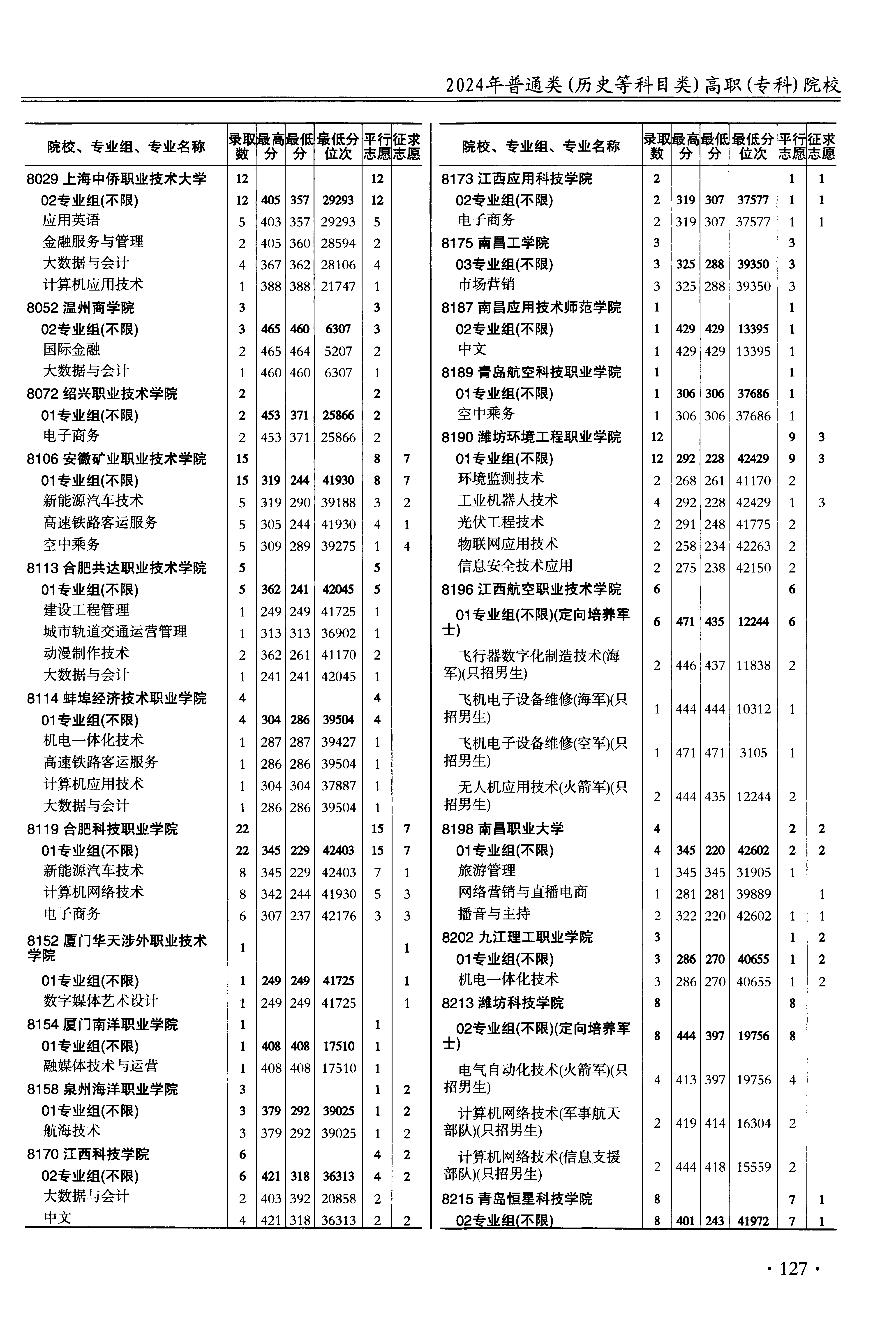 | 院校代码 | 院校名称 | 专业代码 | 专业名称 | 最低分数 | 最低位次 | 专业层次 | 限考科目 | 投档 |