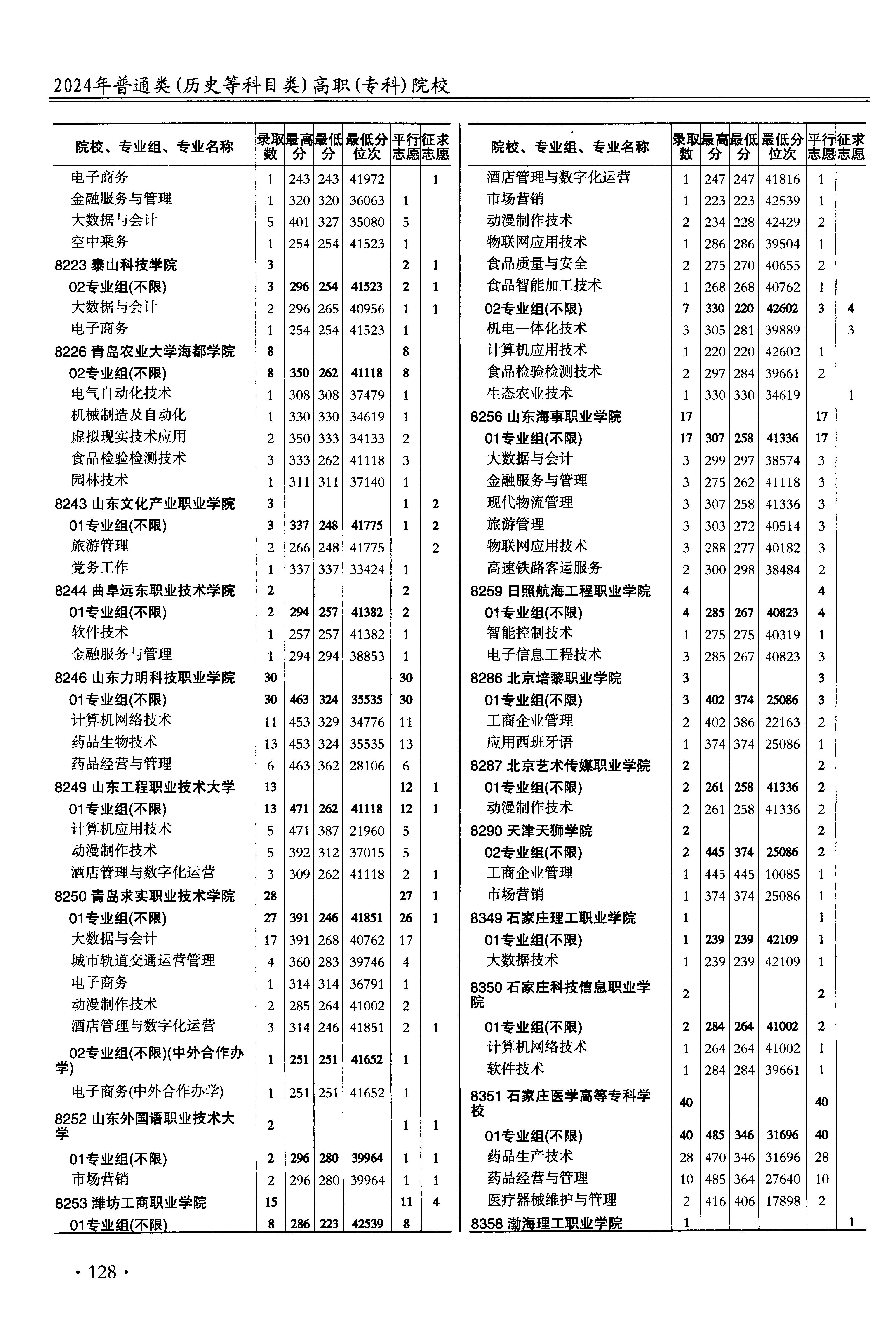 | 院校代码 | 院校名称 | 专业代码 | 专业名称 | 最低分数 | 最低位次 | 专业层次 | 限考科目 | 投档 |