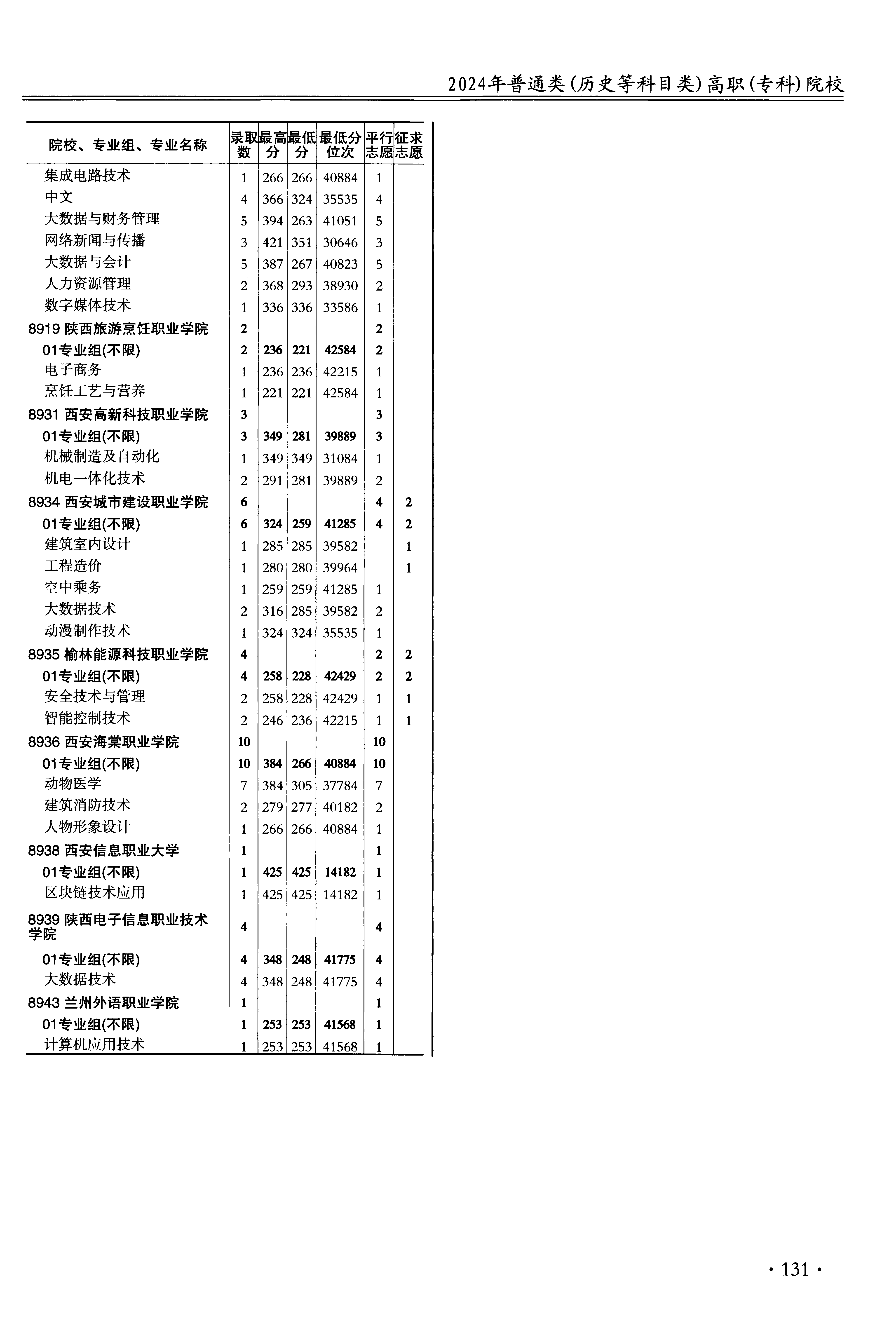 | 8919 | 陕西旅游烹饪职业学院 | 02 | 电子商务 | 236 | 42215 | 专科 | 历史 ,再选: 不限 | 1 |