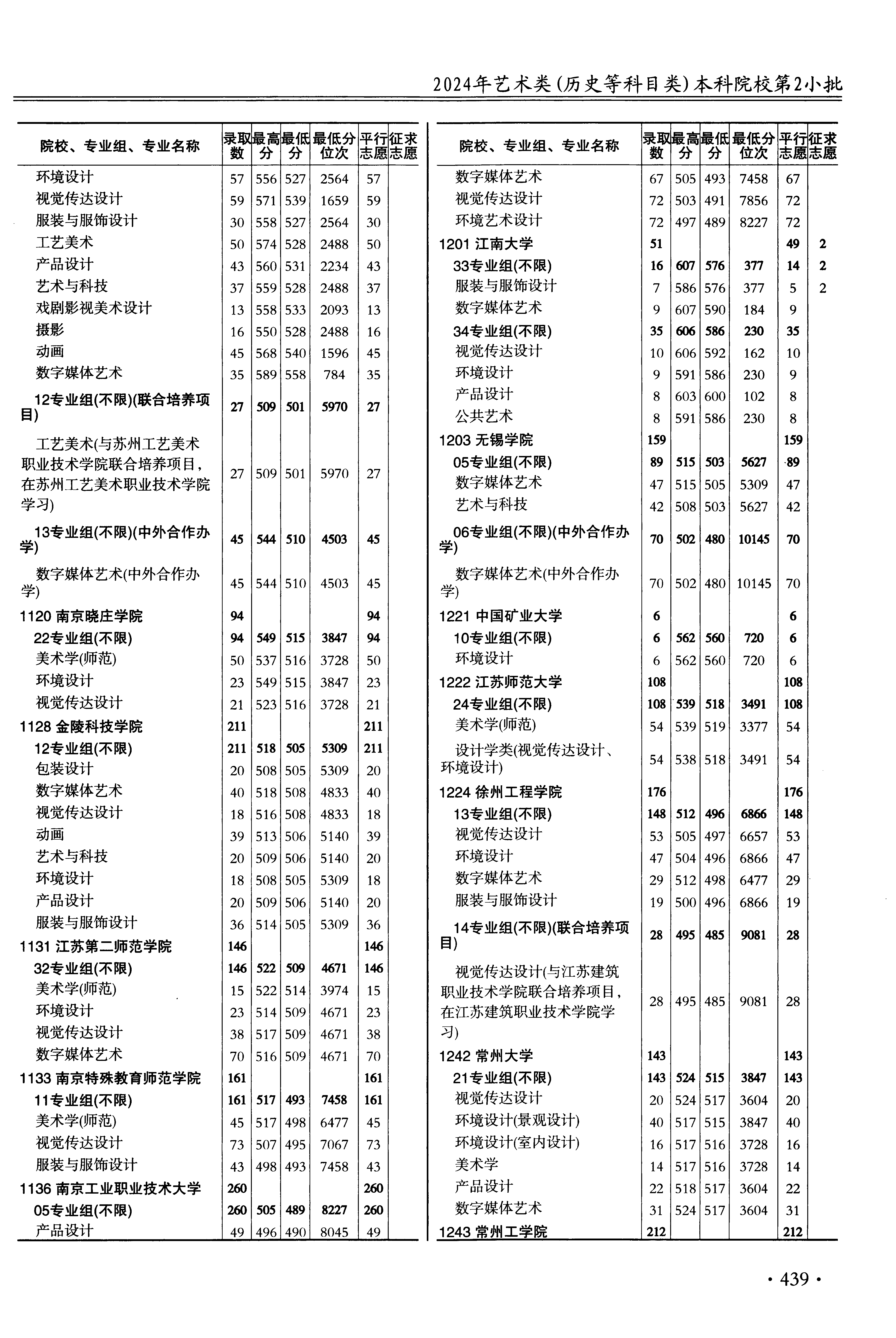 2024年江苏高考艺术类本科提前批第2小批美术与设计类 徐州工程学院 的 服装与服饰设计 专业录取分数溯源信息