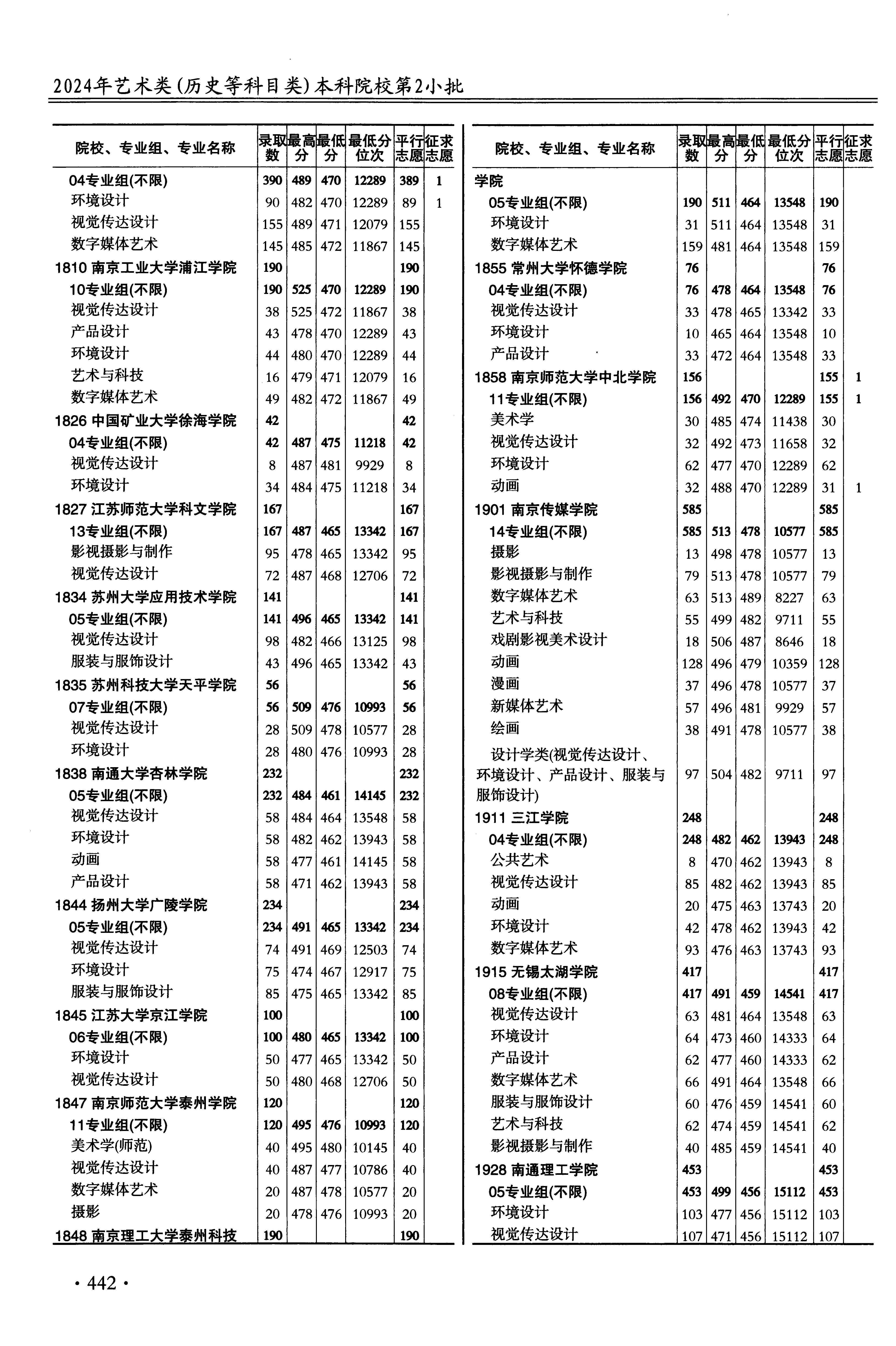 2024年江苏高考艺术类本科提前批第2小批美术与设计类 苏州科技大学天平学院 的 环境设计 专业录取分数溯源信息
