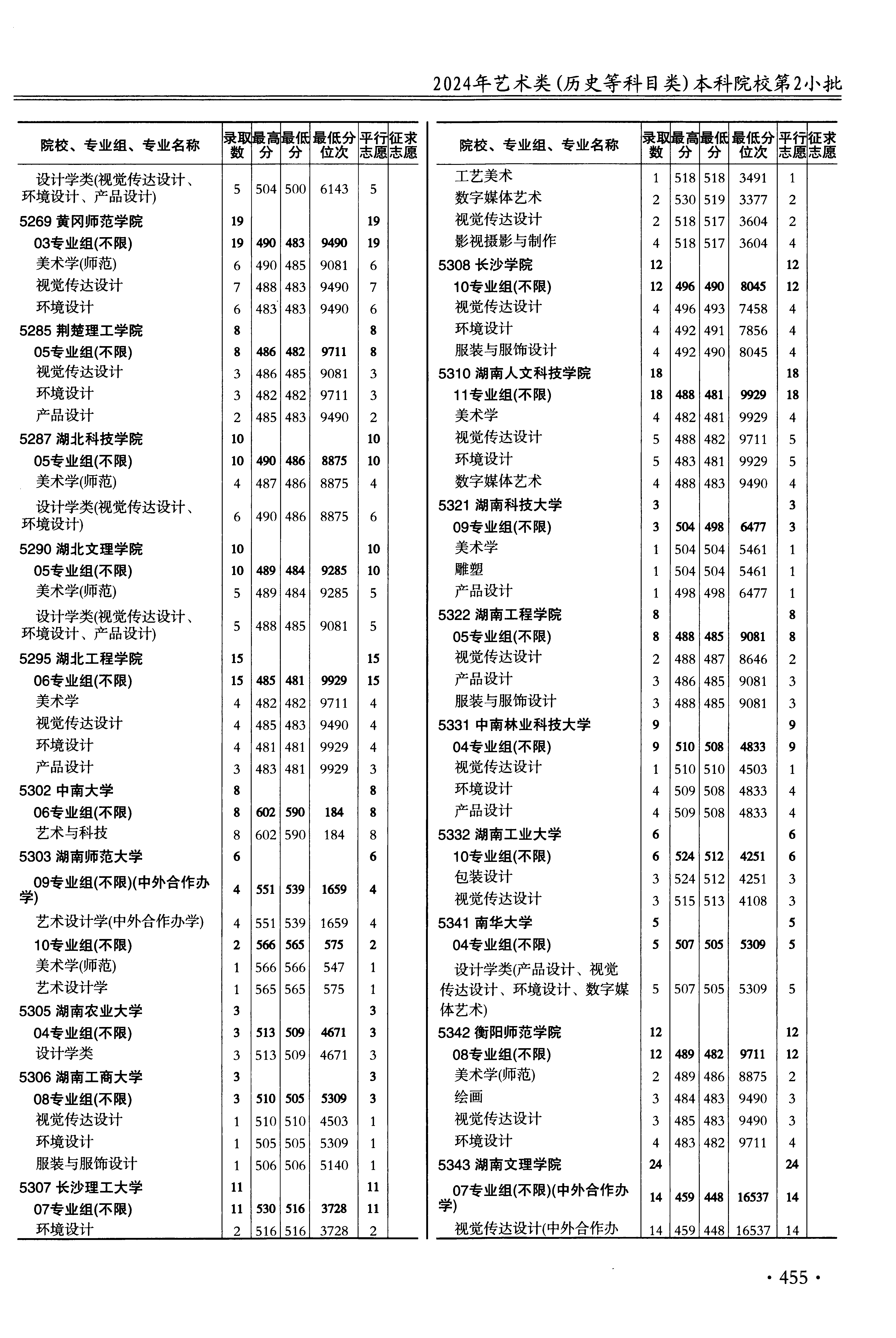 2024年江苏高考艺术类本科提前批第2小批美术与设计类 湖南工商大学 的 环境设计 专业录取分数溯源信息