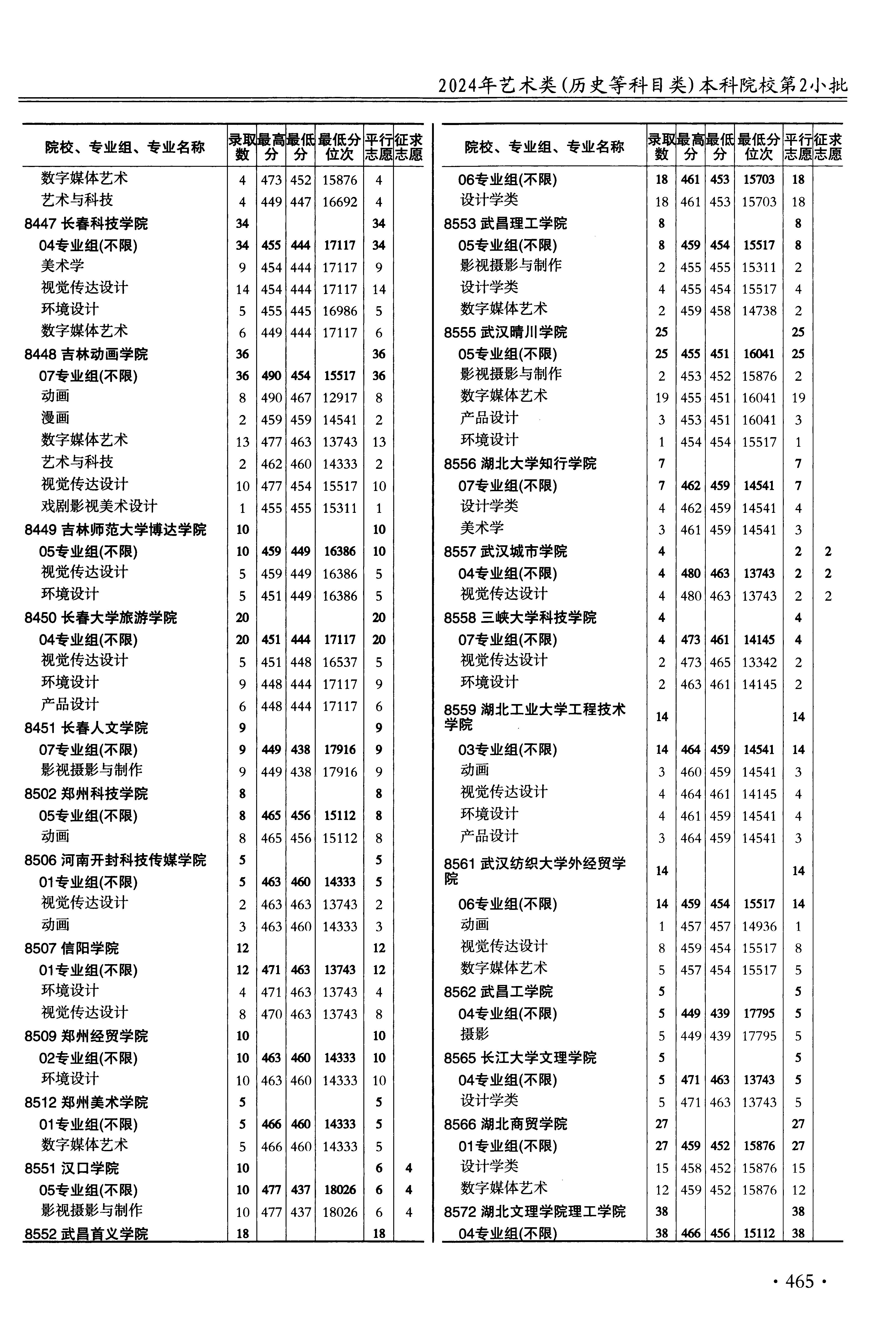 | 8447 | 长春科技学院 | 27 | 视觉传达设计 | 444 | 17117 | 本科 | 历史 ,再选: 不限 | 1 |