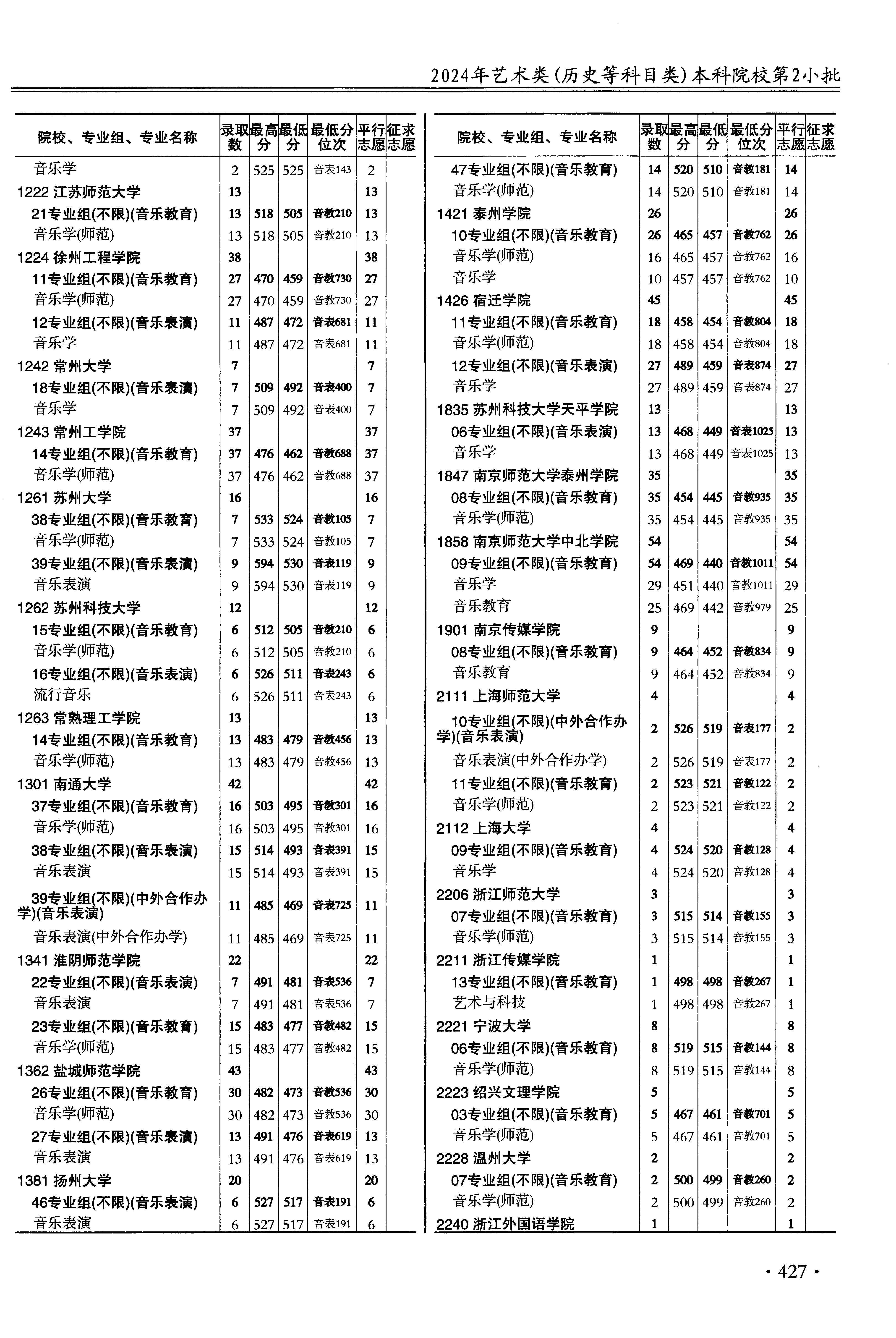 2024年江苏高考艺术类本科提前批第2小批音乐类表演类器乐方向 徐州工程学院 的 音乐学 专业录取分数溯源信息