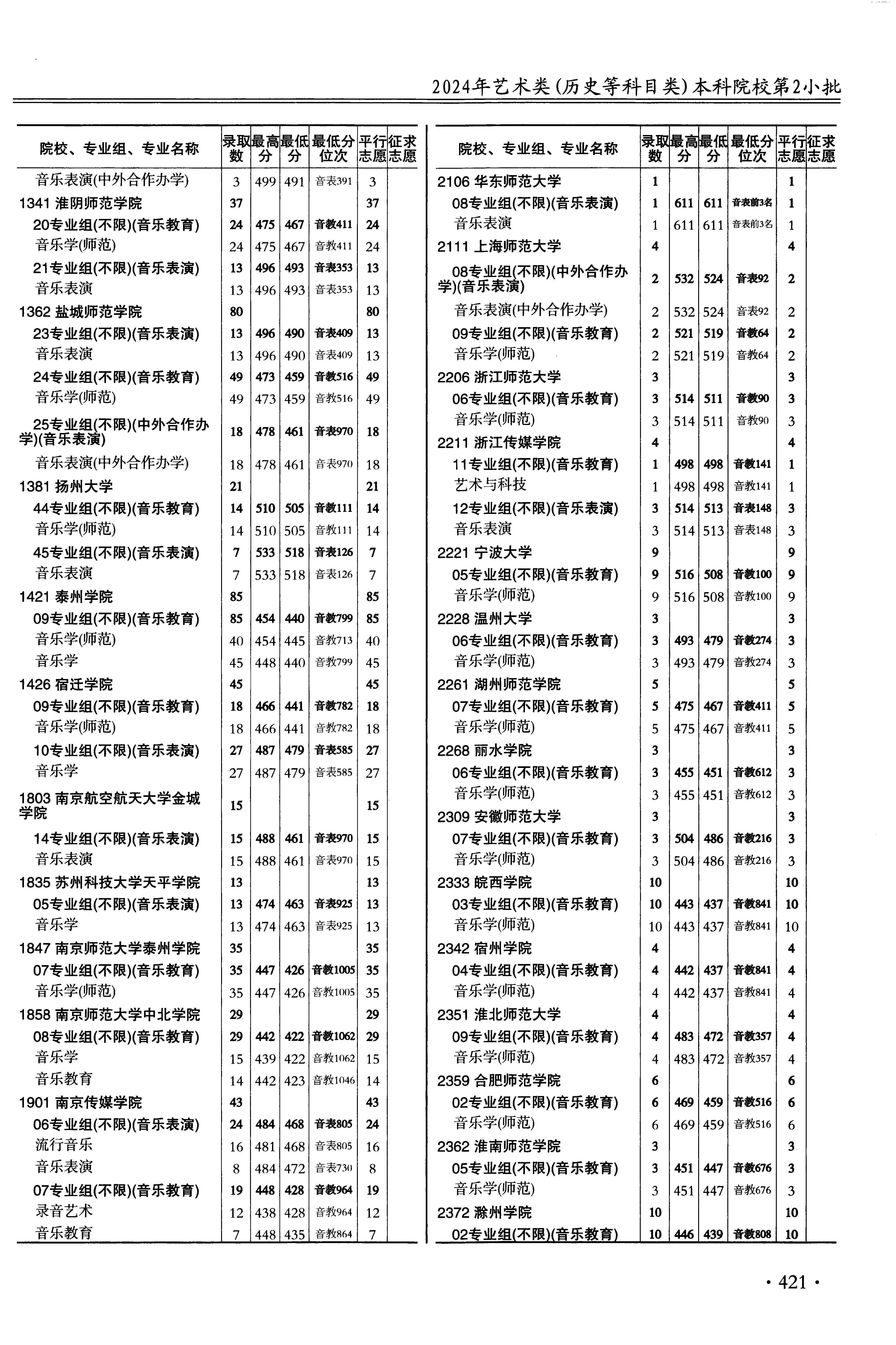 2024年江苏高考艺术类本科提前批第2小批音乐类教育类声乐主项 安徽师范大学 的 音乐学 专业录取分数溯源信息