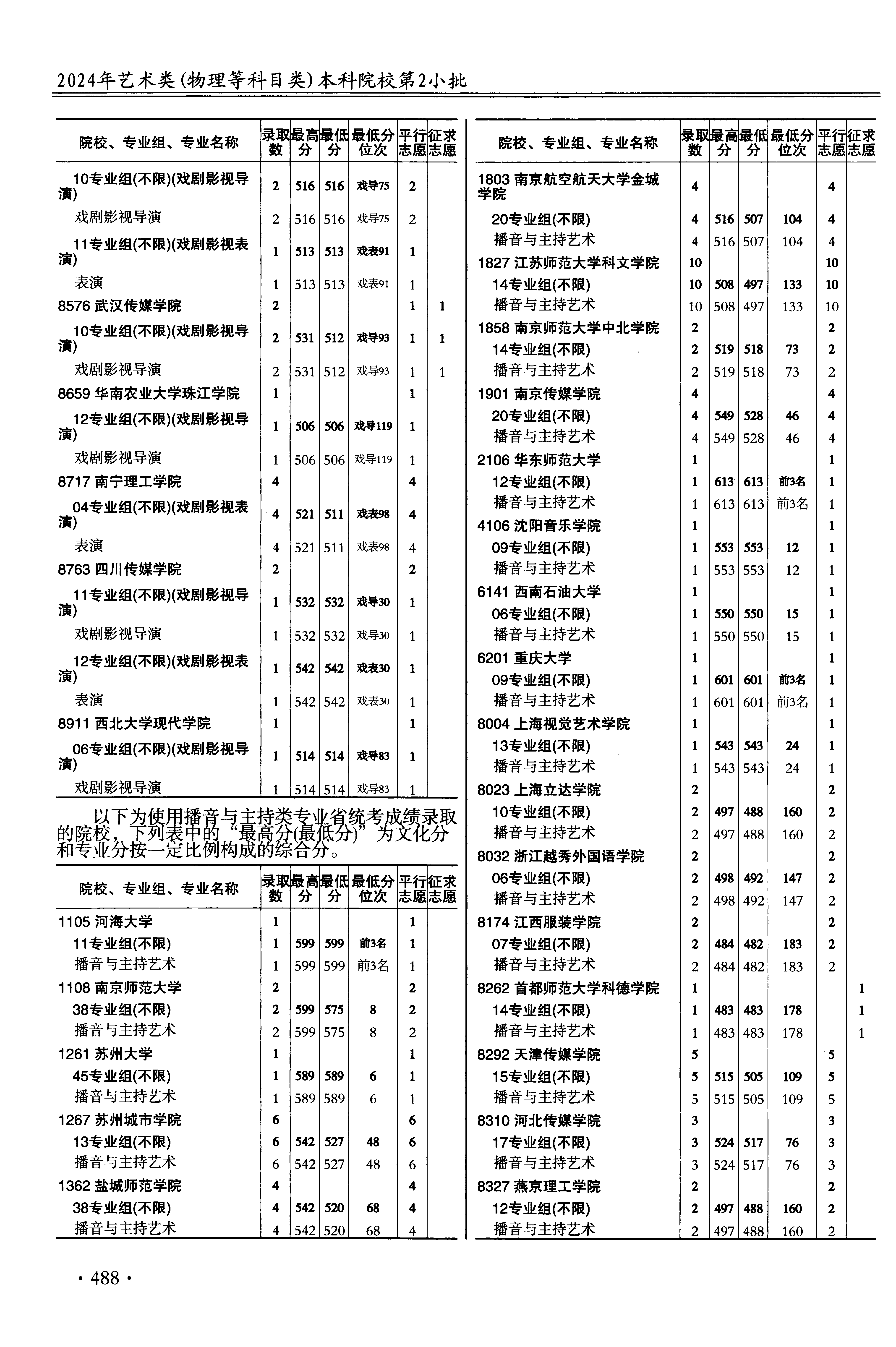 | 艺术类本科提前批第2小批播音与主持类 | ||||||||