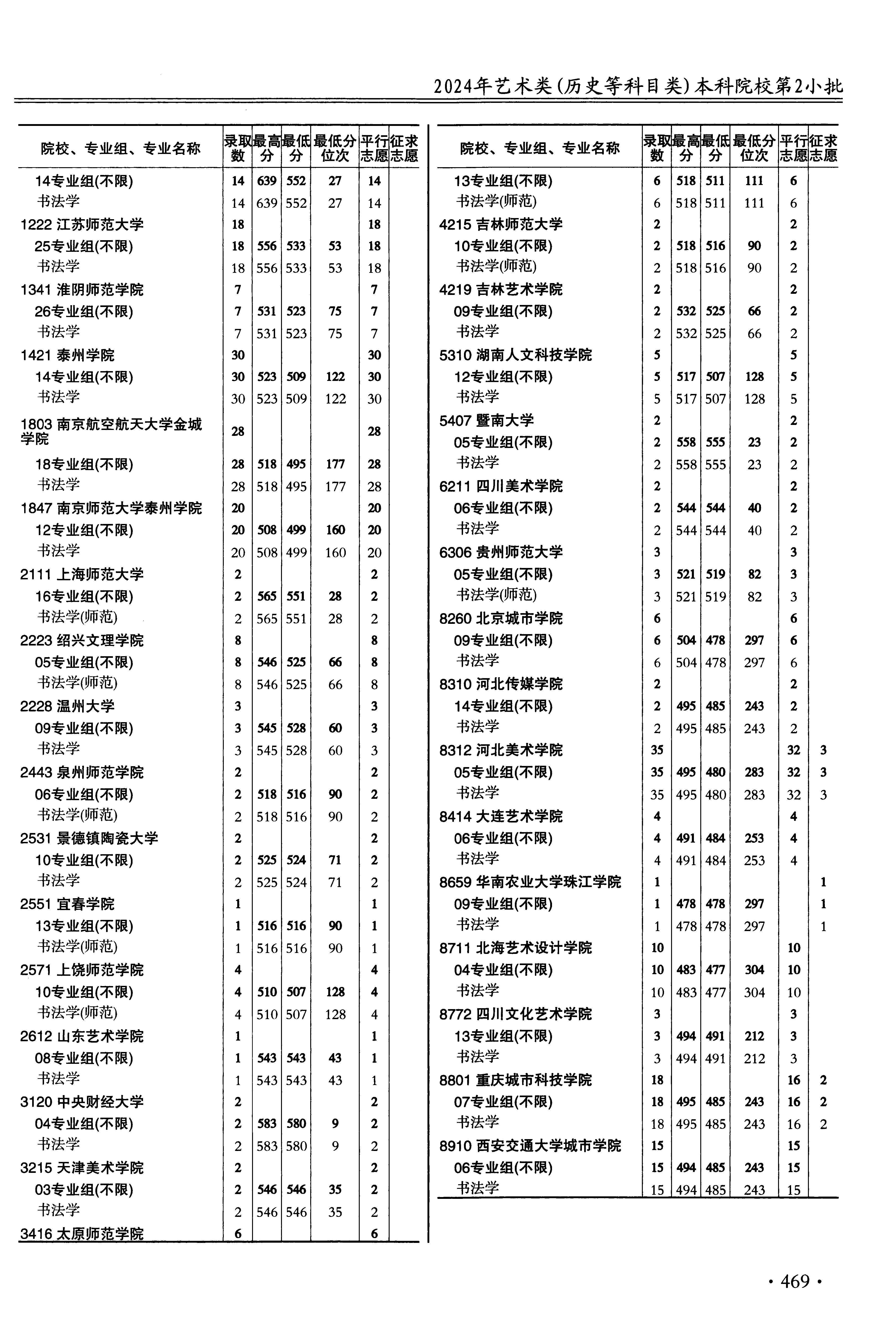 | 艺术类本科提前批第2小批书法类 | ||||||||
