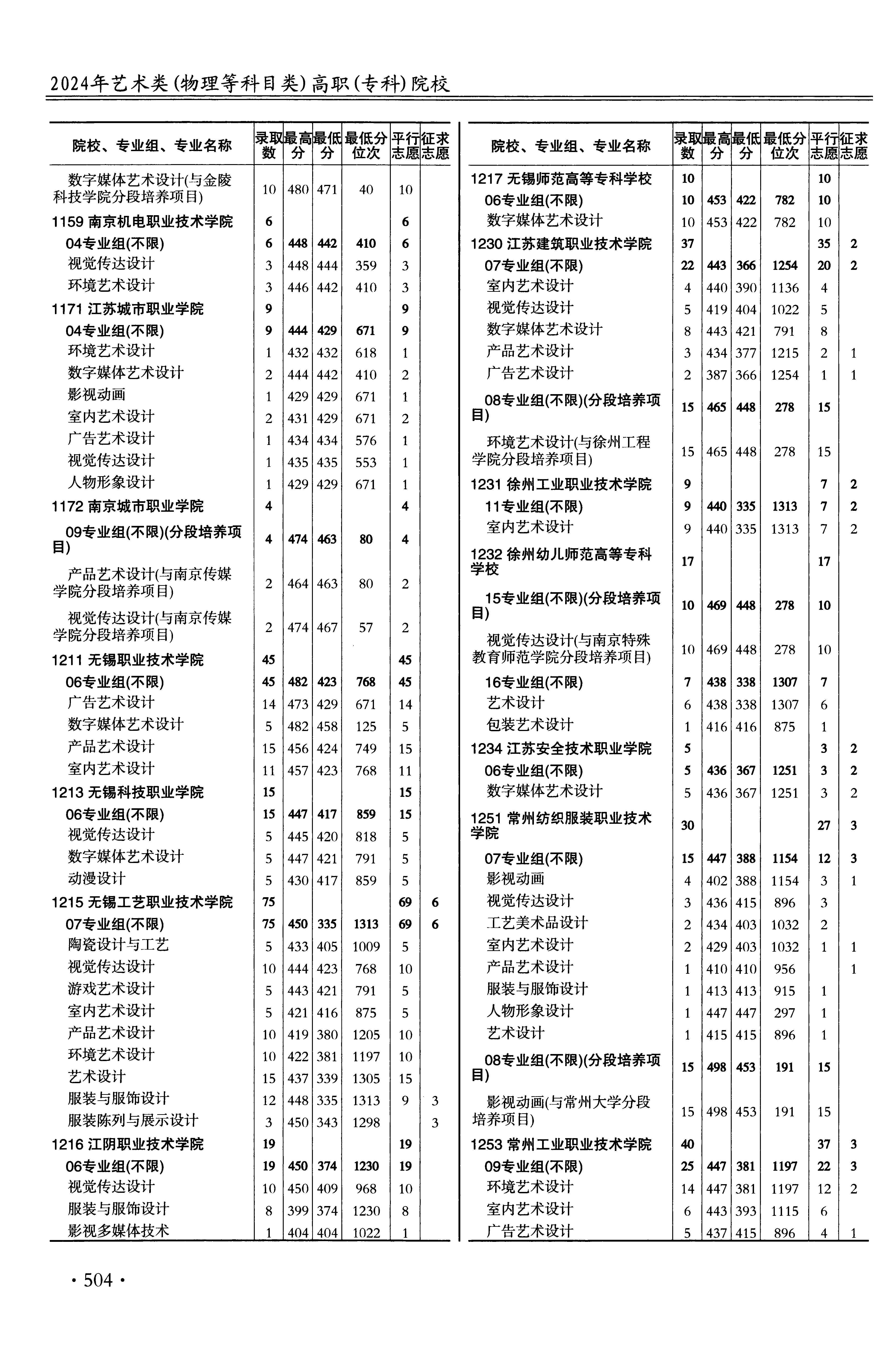 2024年江苏高考艺术类高职(专科)批美术与设计类 无锡职业技术学院 的 数字媒体艺术设计 专业录取分数溯源信息