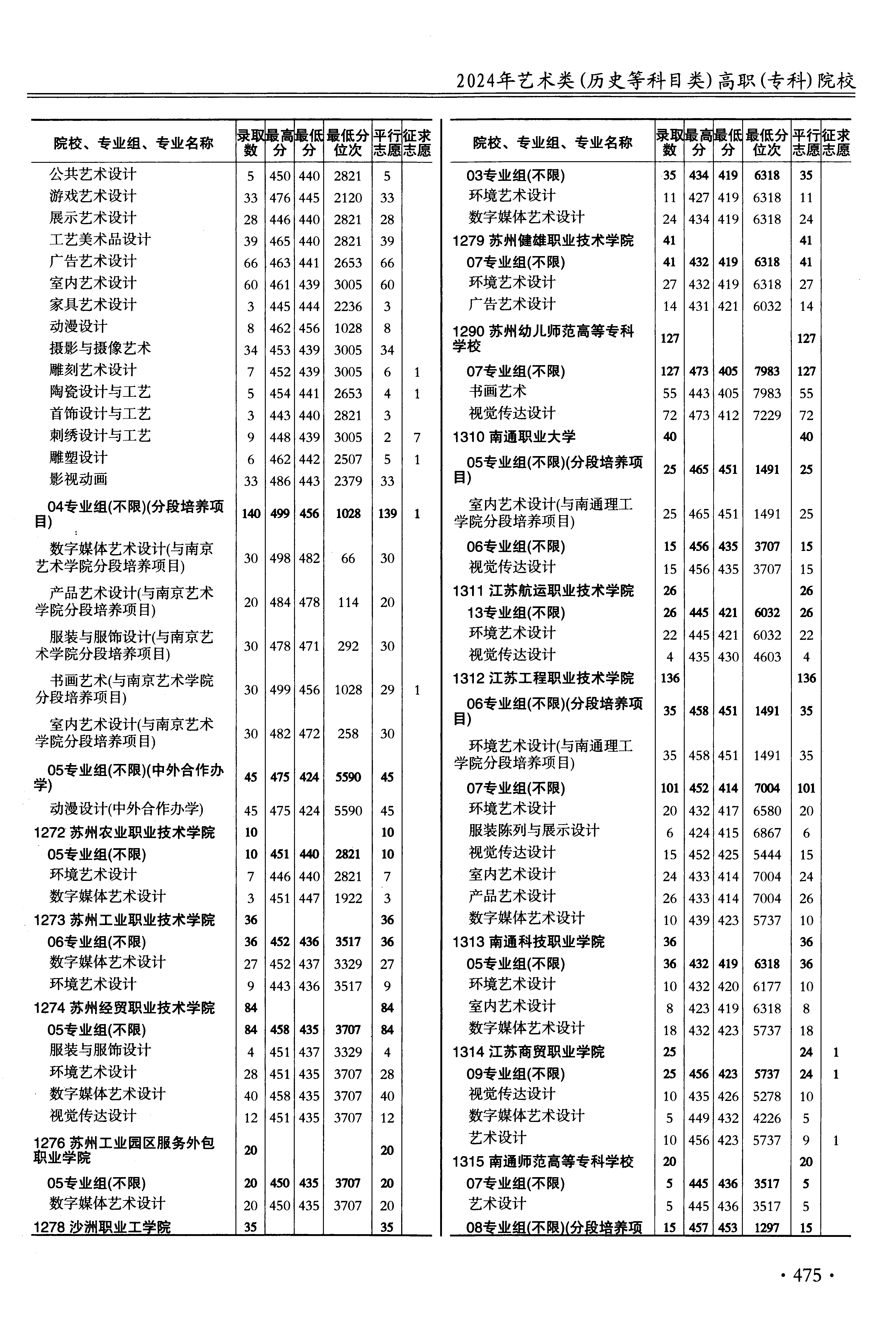| 1274 | 苏州经贸职业技术学院 | 65 | 数字媒体艺术设计 | 435 | 3707 | 专科 | 历史 ,再选: 不限 | 1 |