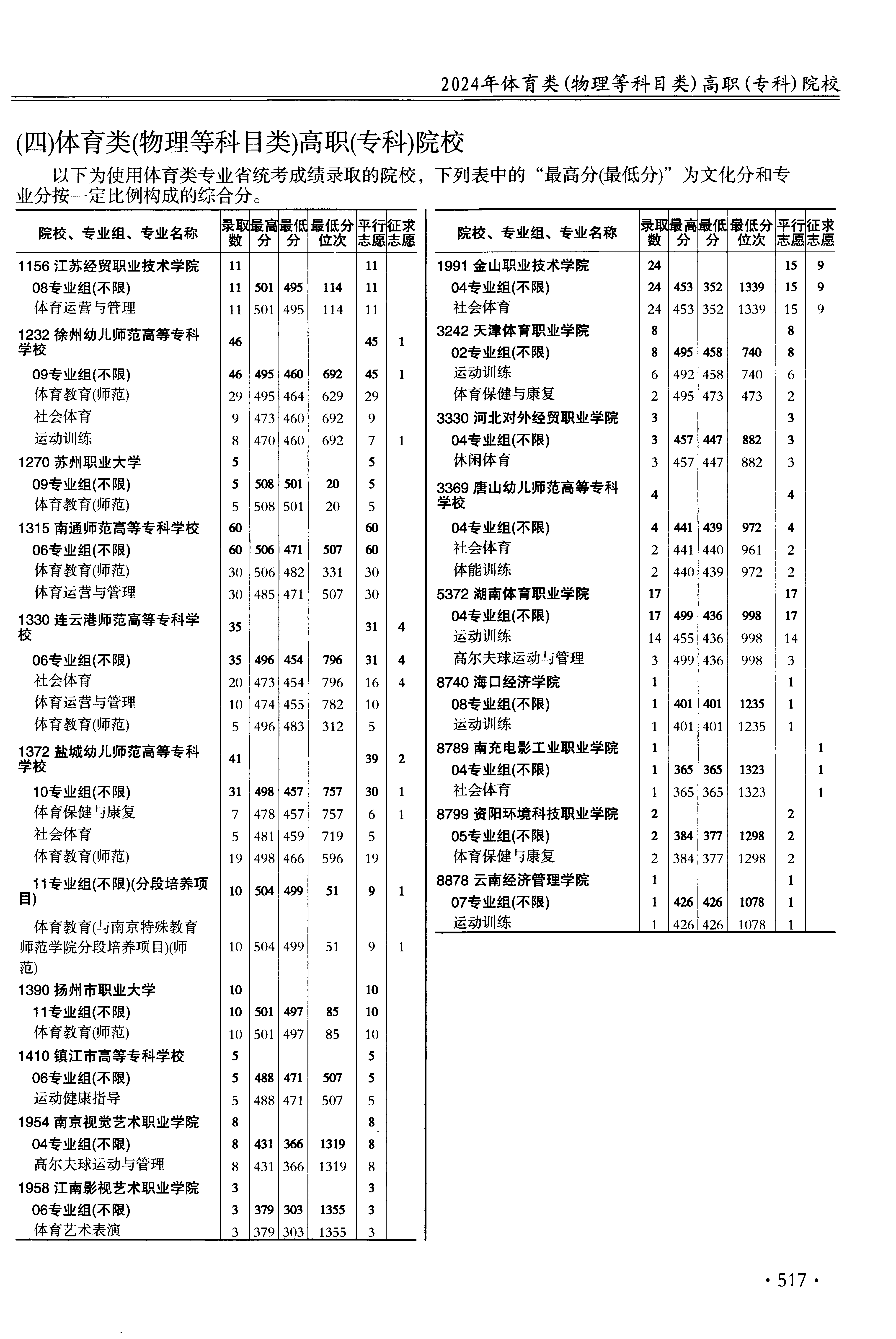| 体育类高职(专科)批 | ||||||||